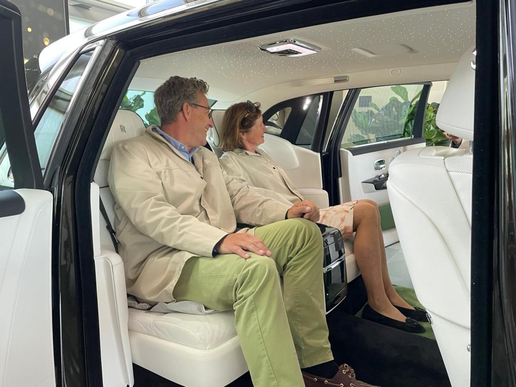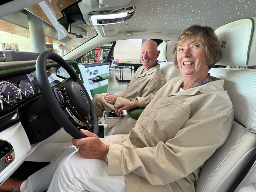 On the Friday, Oliver had invited Gillian, Dudley, his daughter and myself to join both of them on a private tour of the Rolls Royce Factory at Goodwood. A huge privilege and a once in a lifetime event. It is hard to describe the factory as as factory, it is more of an art and design building. Stunningly designed, eco friendly, grass roofs, thousands of different shrubs and plants to support the multitude of bee hives and this was before you entered the building. Inside was equally impressive with bespoke art throughout. There was a huge amount of pride in what they did – absolutely everything was bespoke. As a customer you choose the colour of your car from an infinity of choices – once selected that colour belongs to you and can never be used again!