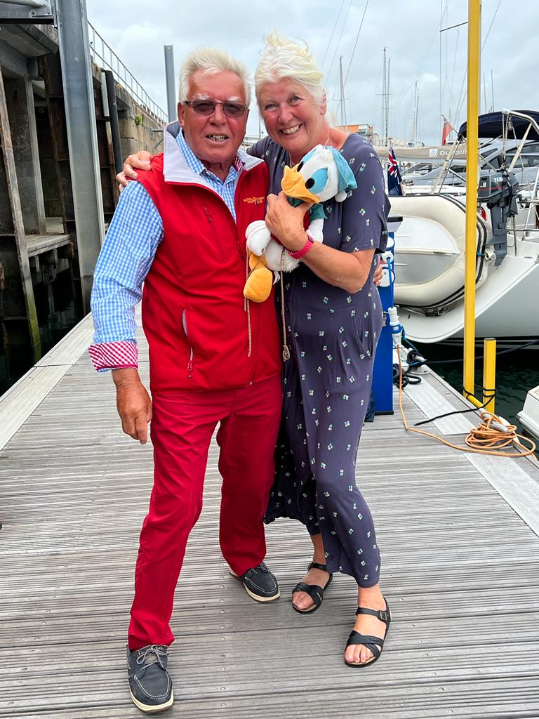 We had been keeping an eye on Bill and Nicky who were struggling with so little wind but GREAT determination. Fred offered to go out ands tow them in the last few miles but they were adamant that they would do this under their own steam. And they made it to great cheers from all of us.