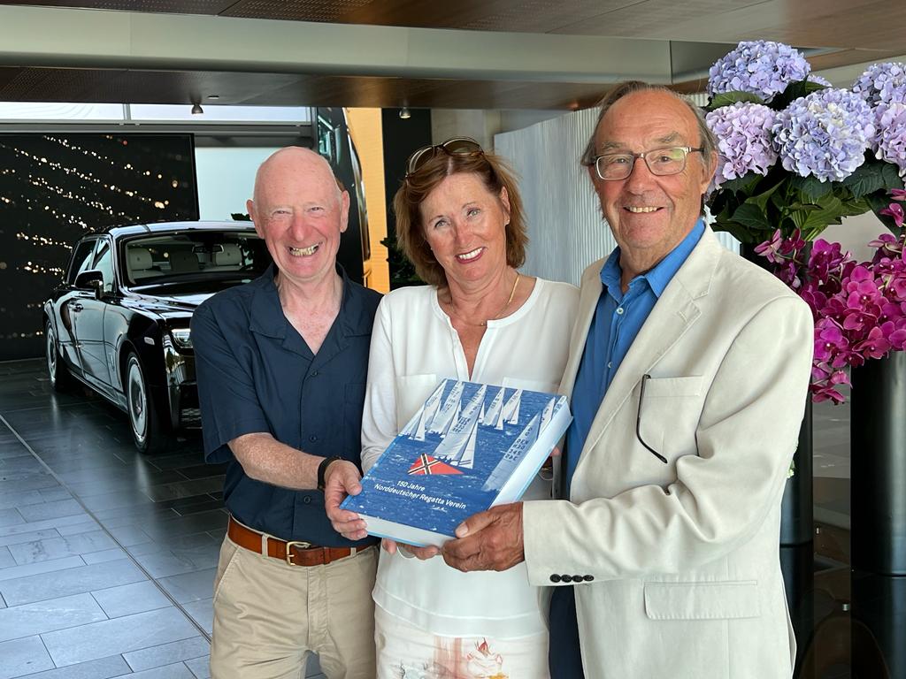 The cruise was not quite over as yet. On the Thursday evening we had a farewell supper in the Club with many of those who took part. A very relaxed meal. Oliver and Ingeborg presented to the Club a personally inscribed look from the NRV and the Club presented a Royal Southern Pennant to them.