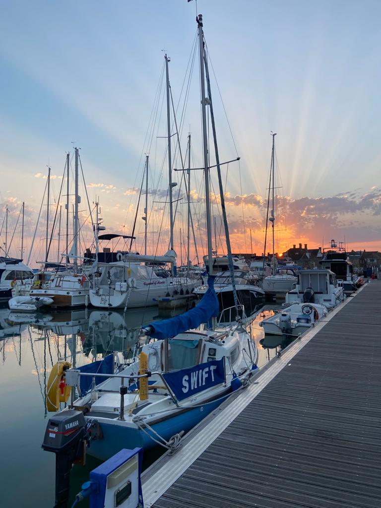 We were having our own little last battle with the boat. The foresail decided to be stubborn once again and was jammed halfway in and halfway out as we sailed down the Solent on a strong tide and strong wind. Gillian was being remarkably calm despite a very long day and darkness falling. We took the main down off Calshot in quite blustery conditions and pitch darkness – 15kts+ – and motored up the Hamble. Fortunately the wind dropped and the foresail was not an issue with berthing. The lack of light was however an issue as we struggled to read the letters on the different pontoons. We were concentrating so hard we did not see a yacht behind us as we turned into our berth. Fortunately they were more on the ball then we were and were forgiving! A perfect reverse berthing with a great sigh of relief. With the lack of wind we disconnected the foresail from the sheet and just wound it around the forestay, opened a bottle of wine which we managed to finish quite quickly and then to bed.