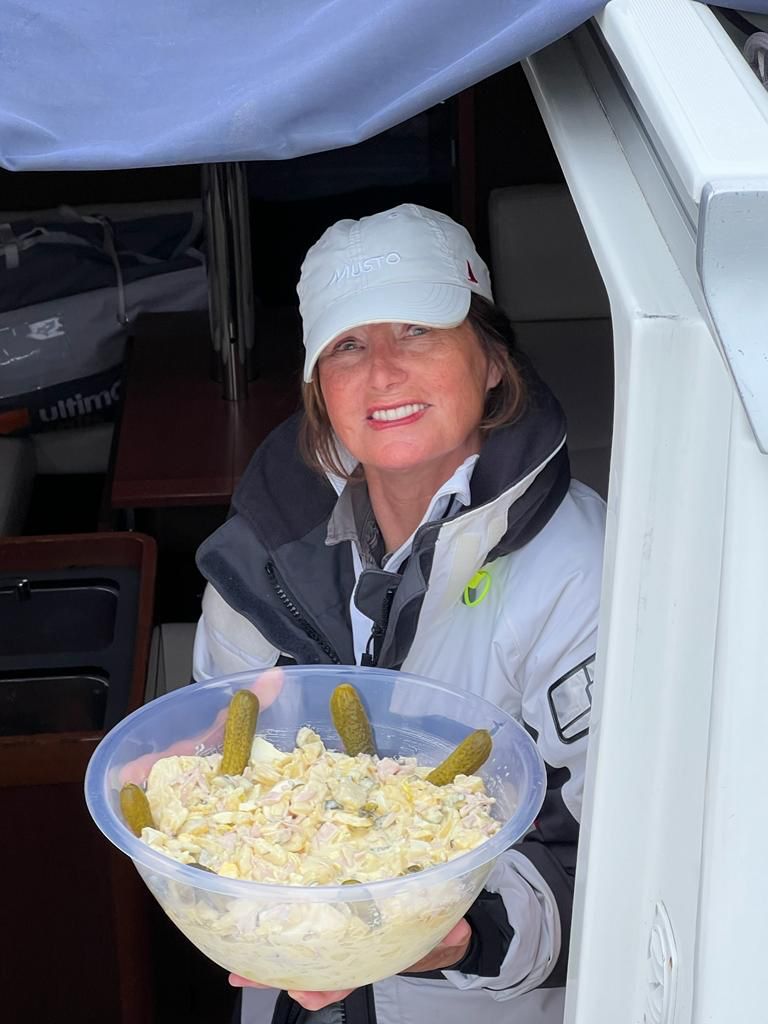 We arrived in St Peter Port around 1000hrs but it had already felt like a bit of a long day and we were all quite drained. We found an empty berth with most of the other boats and shortly Ugly Duckling and Dino Volante mooring alongside. Gillian was not the only one to suffer mal de mer with Kirsten also feeling a little under the weather. Miraculously – despite the sea state – Ingeborg had created a culinary feast for lunch – Potato Salad with Frankfurter Wurstchen. The ‘little table’ was brought out onto the pontoon and we all were extremely grateful for a wonderful lunch with a little liquid to help the digestion.