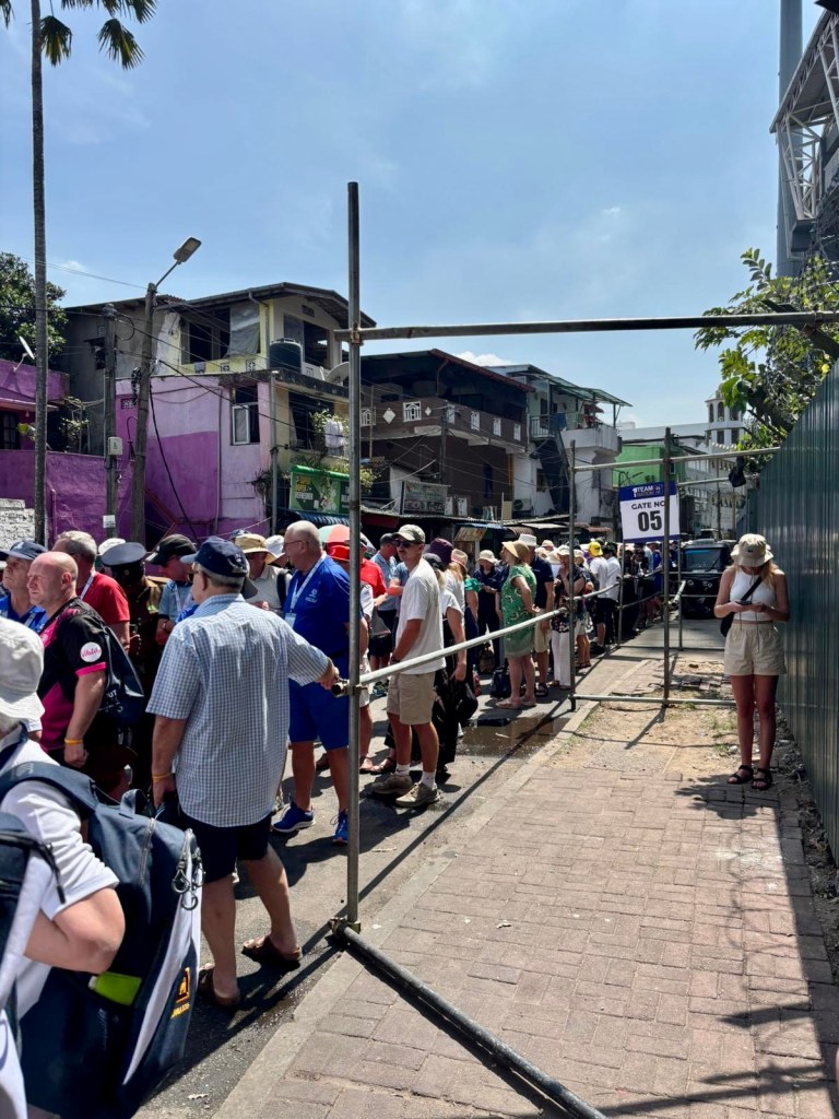 The morning was spent sorting out our packing and bags for departure the following morning. We left for the match – the decider with the series at 1 each – at 1230ish. The trip to the ground is around 30 minutes and as ever most of the junctions near the ground were controlled by the traffic police who continues to be impressive! UK police could learn a lot from them. The rules regarding roundabouts still seemed a bit arbitrary and leaned towards big has right of way! Horns are an essential aid to driving in Sri Lanka. Everywhere are tuk tuks which are nicknames mosquitoes.
