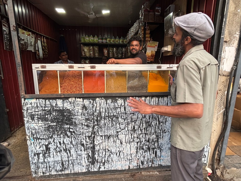 We stopped at a spice stall and Gillian bought some curry powder to take home. However choosing was not straightforward as they have different curry powder for different dishes – meat, chicken, vegetable and fish. we think we bought a general purpose one!