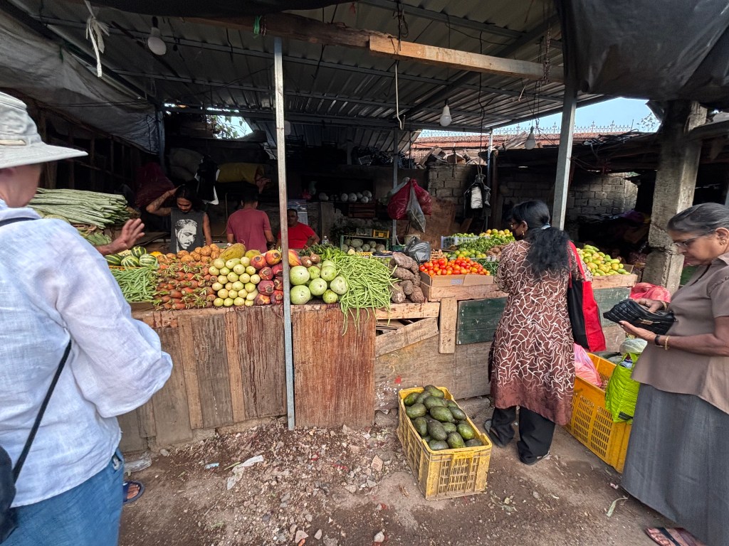 Stalls were laid out immaculately. Sellers jostled with one another for custom – but in a very polite way. Buddhima explained that in general each individual would use the same vendor every day – market was generally a daily trek. Vegetables, spices and fruit plus rice in various guises was the daily diet. People tended to be wary of fresh fish due to the distance it had travelled – Colombo – and much preferred dried fish. An average family would get through 3kg of rice per week and spices were needed to add flavour and texture. Meat was hardly ever eaten. There were no large dairy or meat herds – just locals who kept a couple of cows and a few chickens. ‘Mutton’ was actually goat rather than lamb/sheep. Milk was full fat powdered. There was insuffcient fresh milk to go around and it was too expensive. Despite the agricultural land in Sri Lanka much was still imported including rice.
