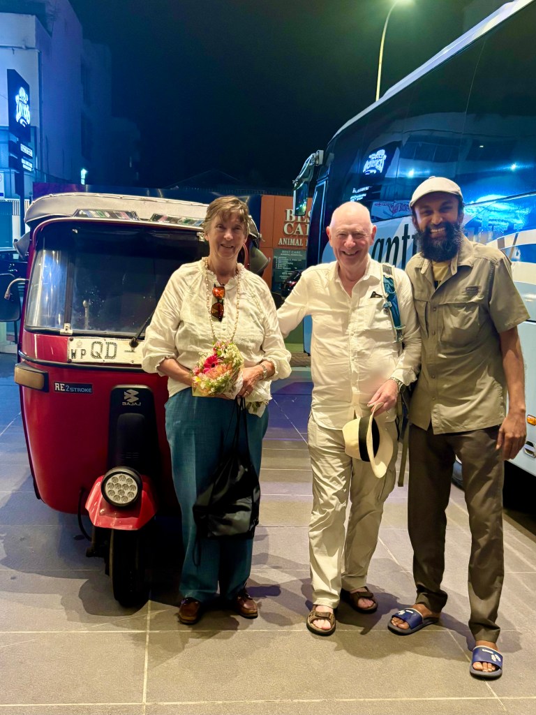 We flew with Emirates Airlines from Heathrow via Dubai to Colombo. A very civilised departure time of 1430 from Terminal 3 but a slightly less civilised arrival time in Dubai of 0030 with a 2 hours stop over before catching the 0230 connection to Colombo. As ever we got on the flight with a determination not to eat every meal that was placed in front of us and failed! With a 5hr30min time difference to Uk we landed at 0800 in the morning. Customs was very efficient, having obtained our e-visa before leaving UK. Luggage was awaiting us on the carousel and we were met by Nick and Carole, the hosts from Not Out.