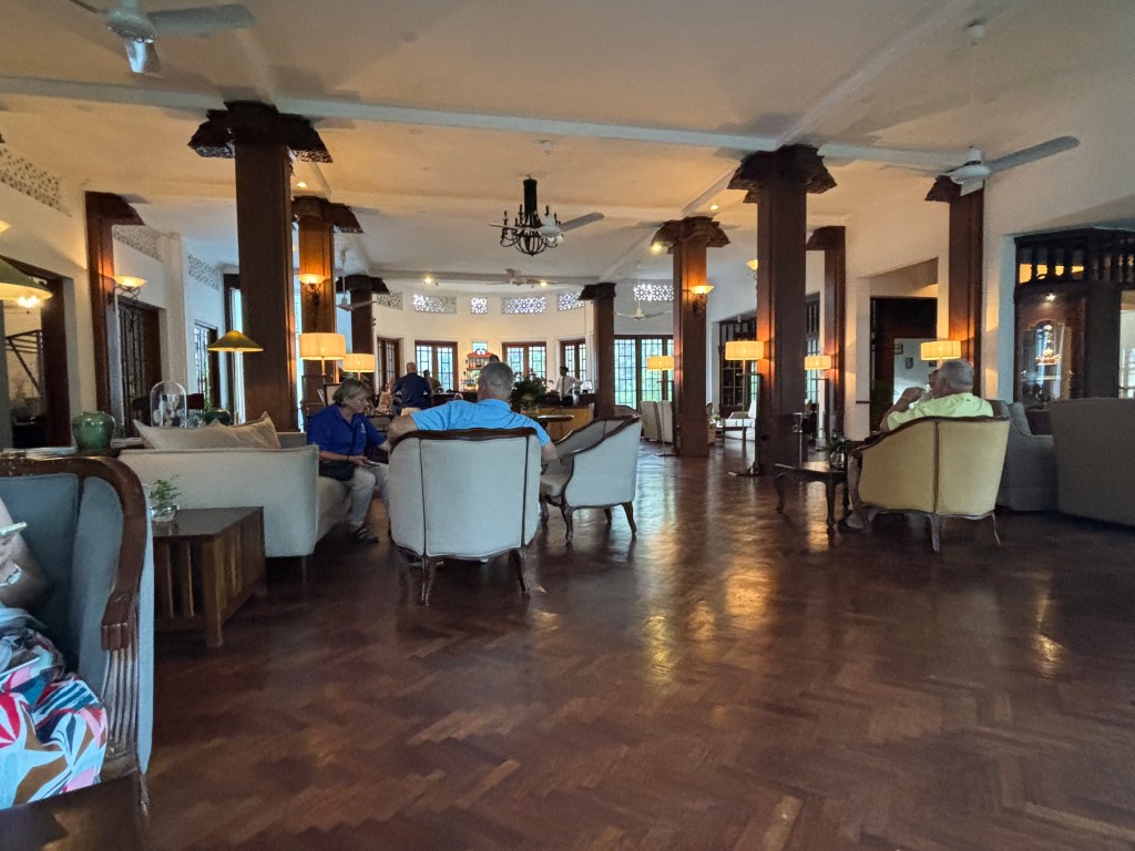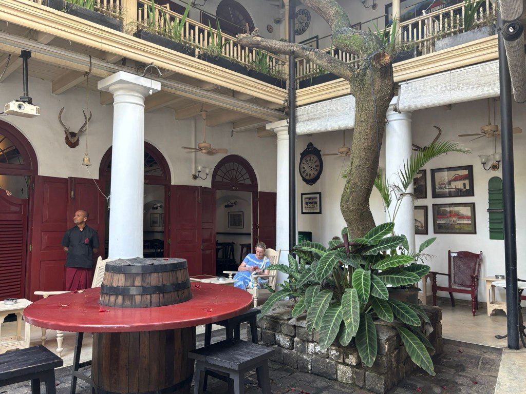 Late afternoon we walked to the Grant Hotel – the place to stay. It has the look and feel of a very colonial style place with all the waiters in uniform of different cuts to indicate their seniority. We had a couple of Sri Lankan G&T in one of the many bars/rooms. They were quite strong and for Sri Lanka expensive – £10 per double.