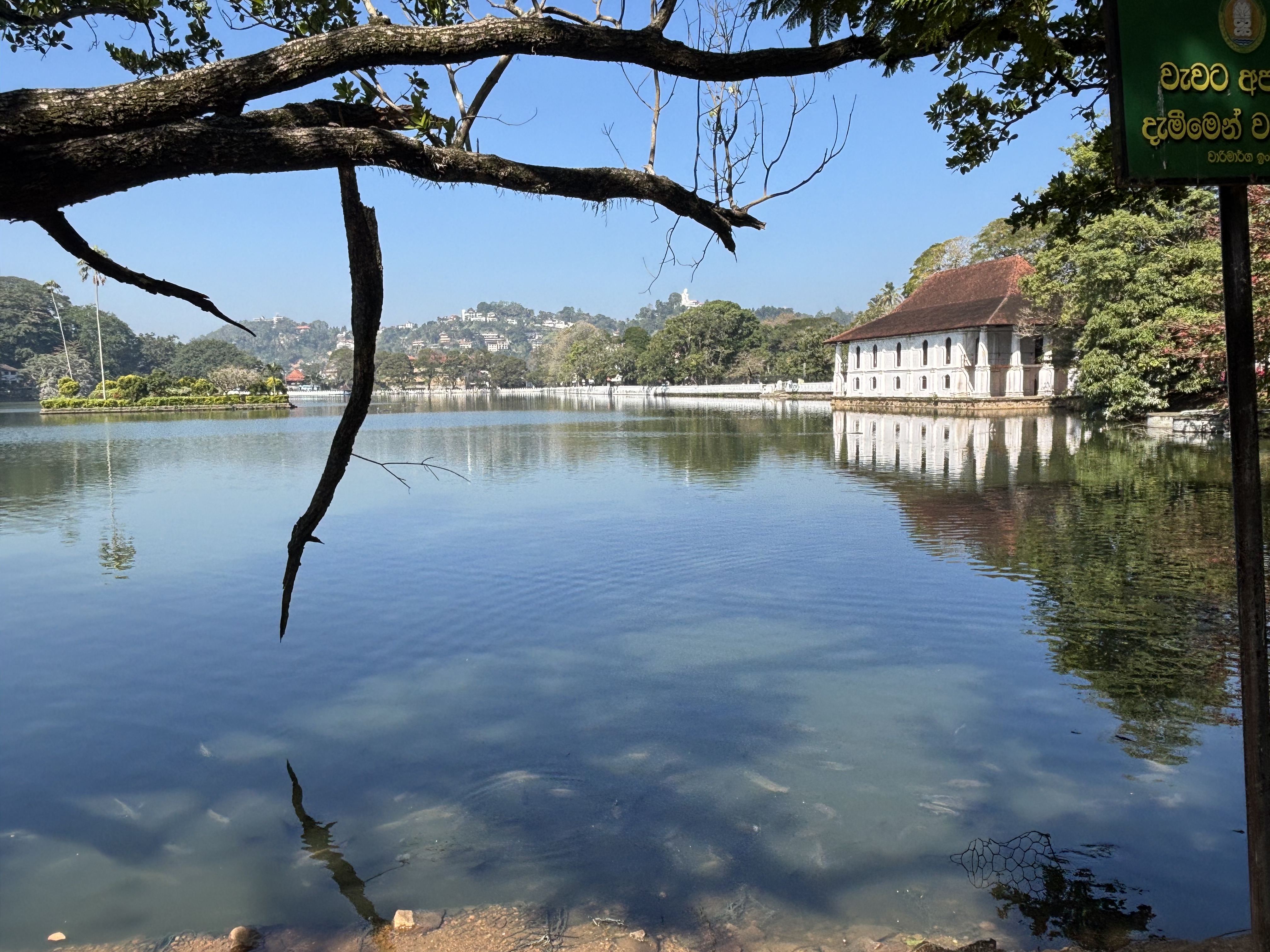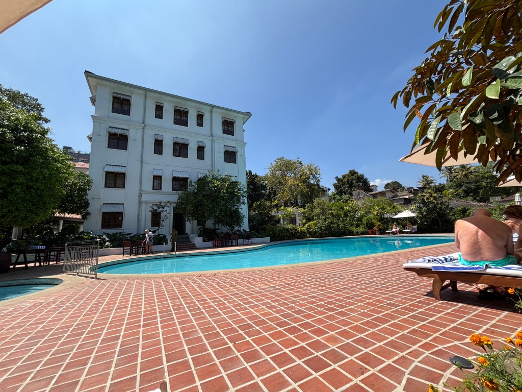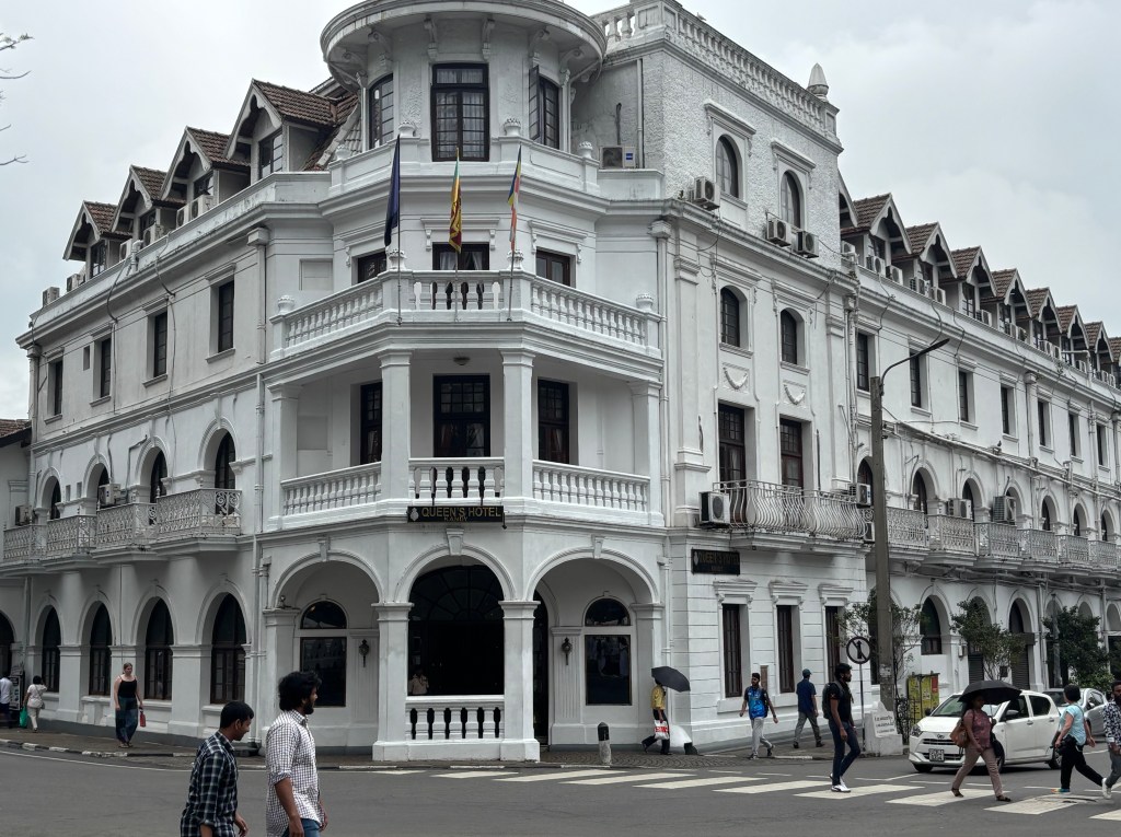 We walked back along the quiet side of the lake together which took around 35mins. Passing the Queen’s Hotel. The hotel was originally constructed as a residence, the ‘Dullawe Walauwa‘, designed by Devendra Mulachariya on instructions from King Sri Vickrama Rajasinha. Soon after the British defeated the Kandyan Kingdom in 1815, – the last to fall in Sri Lanka, it was adapted as a mansion for the Governor of Ceylon, with adjoining buildings constructed to house British troops. It has been a hotel for 160 years and prides itself on colonial style service. We have yet to go in abut will try and have tea or a drink there before we depart.
