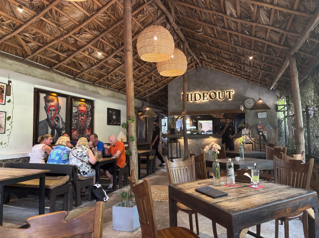 Around 1530 we walked up the the Hideout – about a 7 minute walk from the hotel. The exciting bit was crossing the road. It was very busy. In the end you waited for a gap in the lane of traffic nearest you, crossed and held up your hand hoping the next lane would stop or slow for you! It seemed to work.