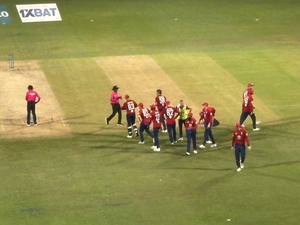 England had already won the T20 series and were two up. They again won the toss but rather than chase they decided to bat first and set a total. I think Harry Brooks just wanted the team to get a feel for setting a total and then bowling out the opposition. We sat back full of hope and expectation. that lasted two balls when Ben Duckett was out for a duck. Well we still had plenty of depth in the batting. Then Jacob Bethell went for 3 after 7 balls, then Tom Banton for 7 off 7 balls, then harry Brook for 4 off 3 balls. By the end of the 6th over we had lost 4 wickets for 35 runs. By the 10th over we were still only 59/5. Phew not what we were expecting. Sam Curran came in and did somewhat steady the ship making 58 which proved to be the highest score from any batsmen on both teams. Liam Dawson made a credible 14 but perhaps not in the most elegant way.