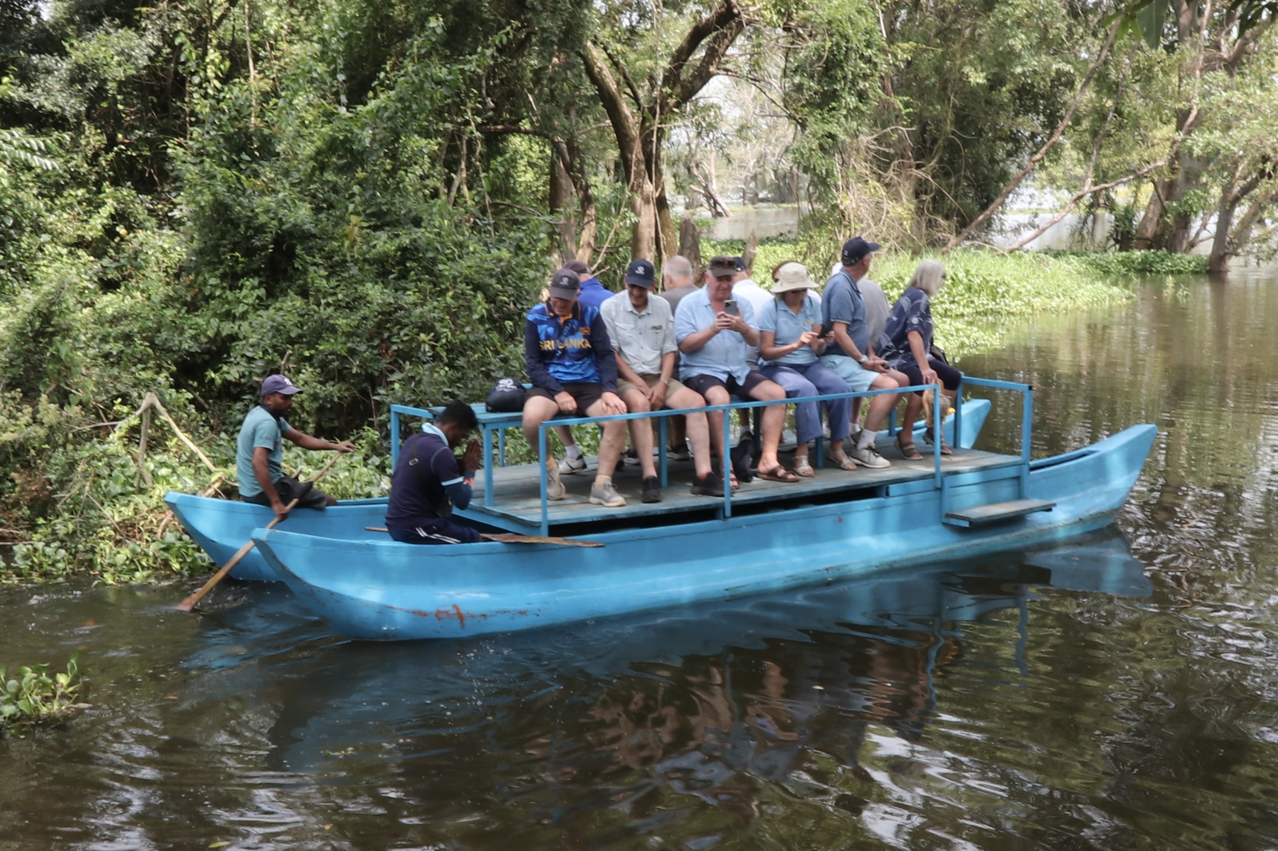 Next stop was a river trip on the Mandugangar River. It is more like a lagoon and a mixture of fresh and salt water. A large expanse with around 16 islands. As with other tourist spots we had been to it was swarming with people. Climbing in and out of the boats was a challenge on rickety piers. After exploring some of the river and a small mangrove we sped across the water to a cinnamon village. A good demonstration of stripping the inner bark and wrapping in the outer bark which is then dried in the shade. A drop of cinnamon oil was placed on our hands and the smell stayed with us for the rest of the day. I am not sure I would wear it as a perfume!