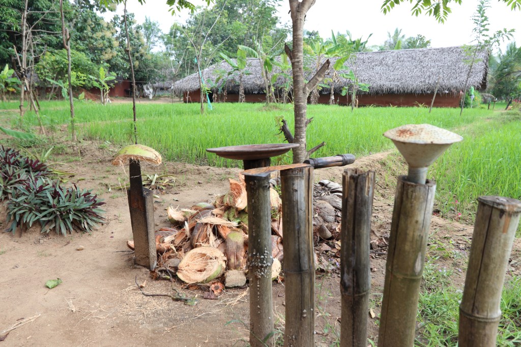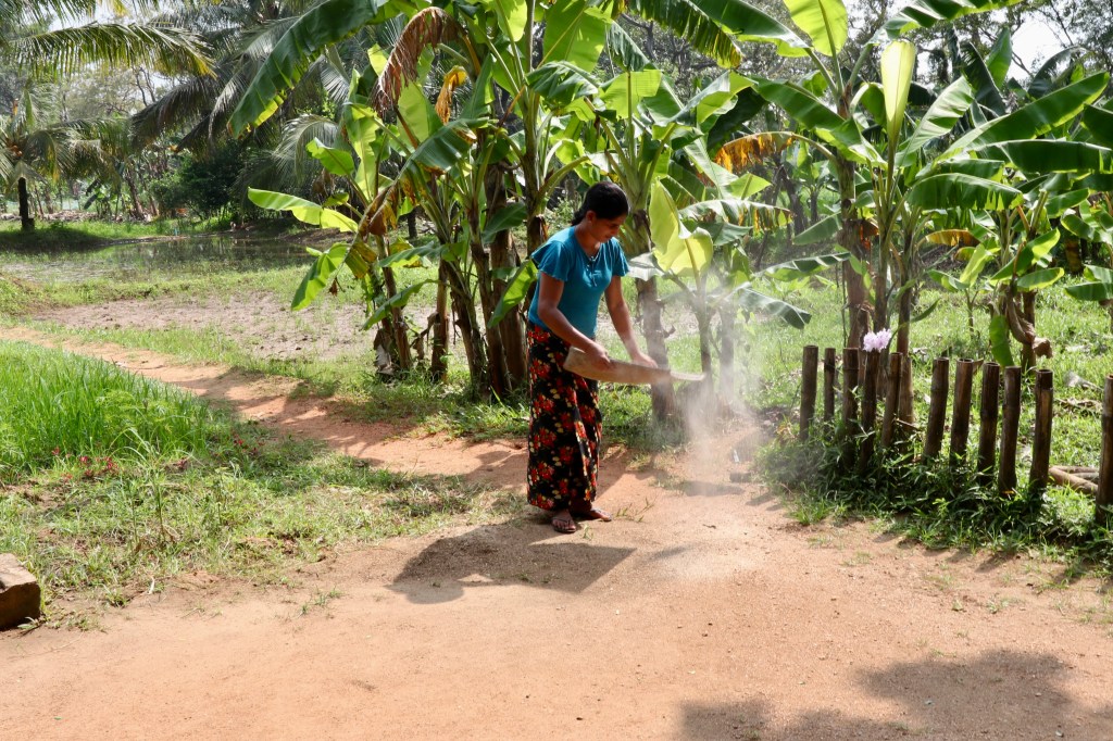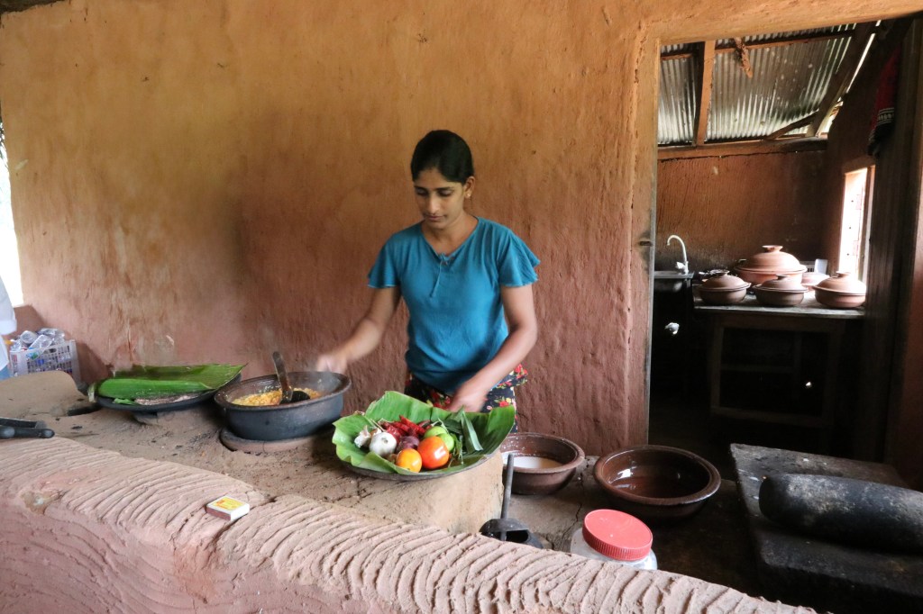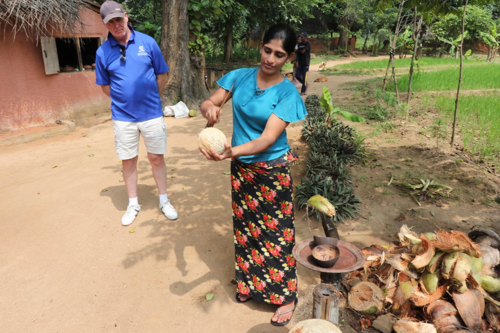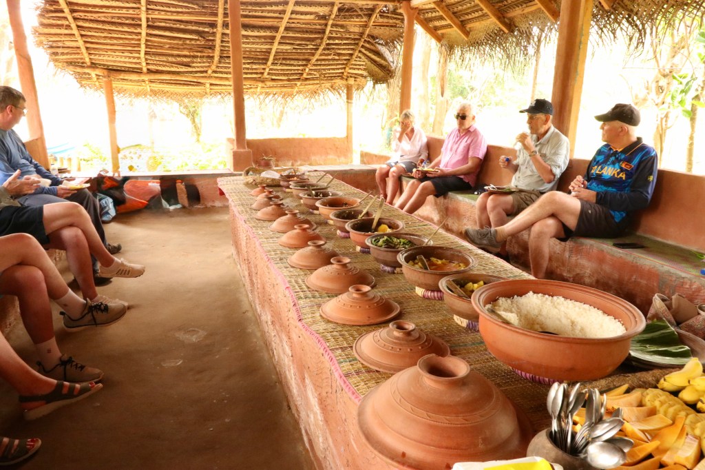 This was advertised as a visit to a working village but Gillian called it a Business Park! We were taken by a tractor pulling a wagon with seats to a ‘canoe’ and taken across the water to the village. We then had a cookery demonstration in a village house. At the end we wandered around the ‘village’ and discovered all of the houses were used for tourist cookery demonstrations. This did not detract from the event which was superb. The woman took us through all the stages of preparing food from coconut rice, dal, vegetable curries and breads. Traditional wood fire and clay pots were used as well as rudimentary but sharp tools. The food itself was wonderful including the dried fish which Gillian loved. As every eating fruit in the country in which it was grown made you aware of how poor the quality is by the time it reaches UK.