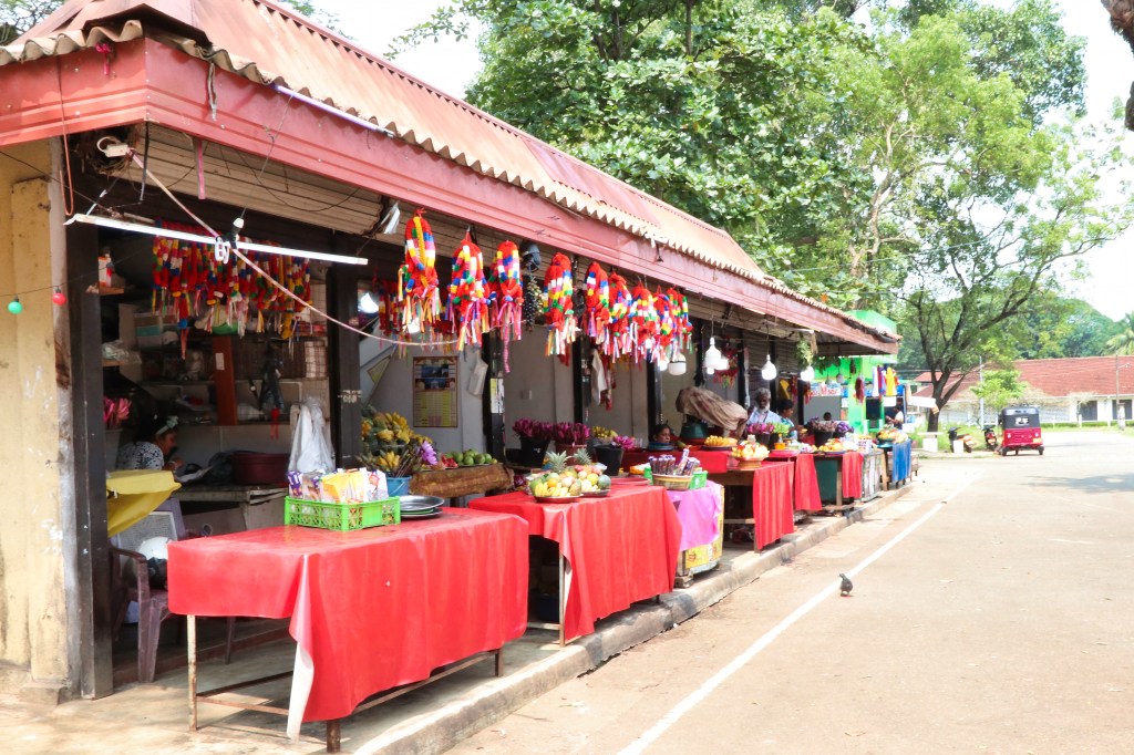 Back on the street we stopped at a stall that sold sweet snacks. These were both treats for children as well as snacks for adults. Boddhima bought a selection for us which we munched our way through during the last T20 the following day. We then stopped at a bakery for samosas – meat and vegetable which were delicious. Already quite full, we were hosted in an old bar for a glass of arak. Sri Lankan arak is made from the fermented flowers of coconut trees. As we sat in the shade of a courtyard we talked about the challenges of bringing up families in Sri Lanka. Buddhima’s husband had been forced to find work overseas and worked as a grinder in a S Korean shipyard. He could afford to come home for one month every 12 months and he had been doing this for 11 years. But he earned enough to get their two boys through private school and hopefully into university which was highly competitive. Boddhima worked as a guide but had been a teacher. When her father dies in a car accident when gave up teaching to look after her mother and the two boys. The location we were in used to be the house/mansion where the King kept his mistresses. These were separate from his concubine and his wife. But they were officially recognised and known as Gold, Silver and Bronze with places allocated to them at ceremonies.