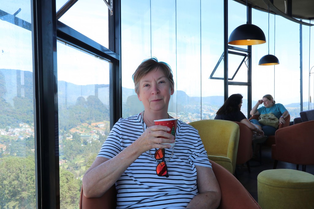We were picked up at 1300 and spent two hours with our young tuk tuk driver who seemed very keen to show off to the other tuk tuk drivers that he had paying customers who were foreign. We first headed up to the Eagle’s View Point at 6,700ft. A bit of a hairy drive up …… and down! But the views from the top were worth the trip. We climbed up to a viewing platform which had an excellent coffee shop as well as a vista across the valley and the many tea plantations.
