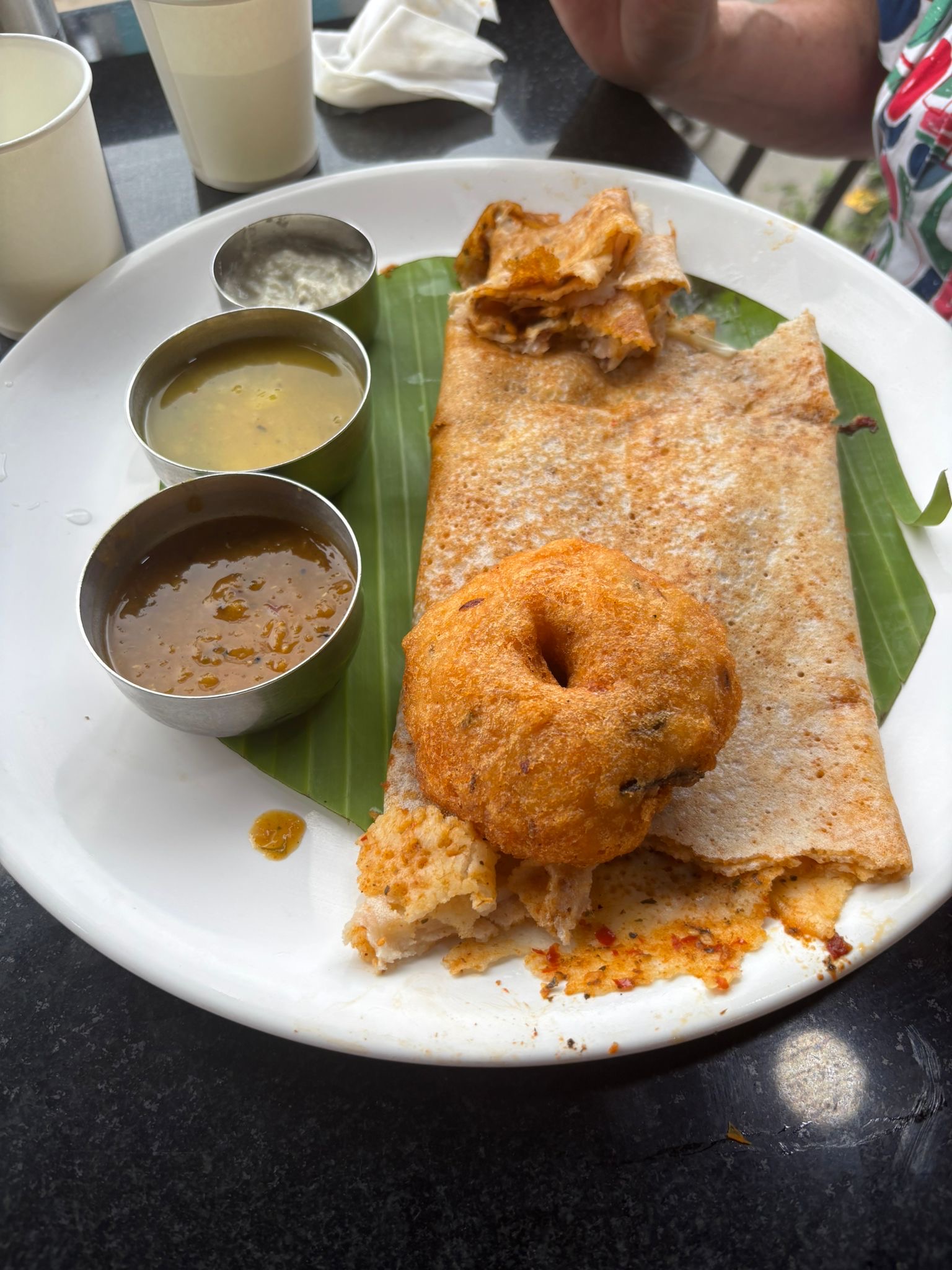 We crossed the road from the bar to a cafe which sold traditional lunch time snacks. IKara Dosai – with Coconut chutney,potato curry and Sambaru and the fried 🍩 is called- ulundu wadei – made with skinned black gram seeds ( Ulundu / Undu ) with rice fermented in coconut milk.
