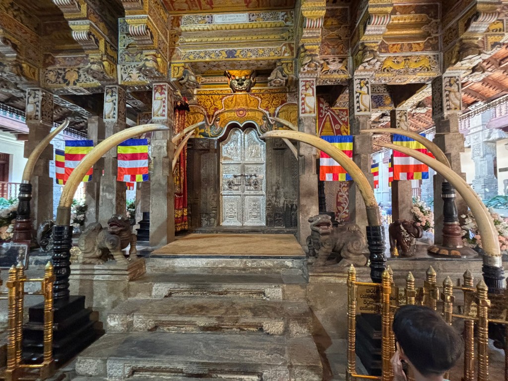 Kandy was the last kingdom in Sri Lanka to loose its independence to the British in 1815. Prior to Colonial intervention there had been a number of kingdom’s in the country which was strongly Buddhist. One of its most scared relics was the left tooth of the Buddha which had been rescued from his funeral pyre. Whoever had control/hold of the relic was considered the senior King or Queen. As Kandy was the last Kingdom, the tooth relic was resident in Kandy in the Sri Dalada Maligawa.