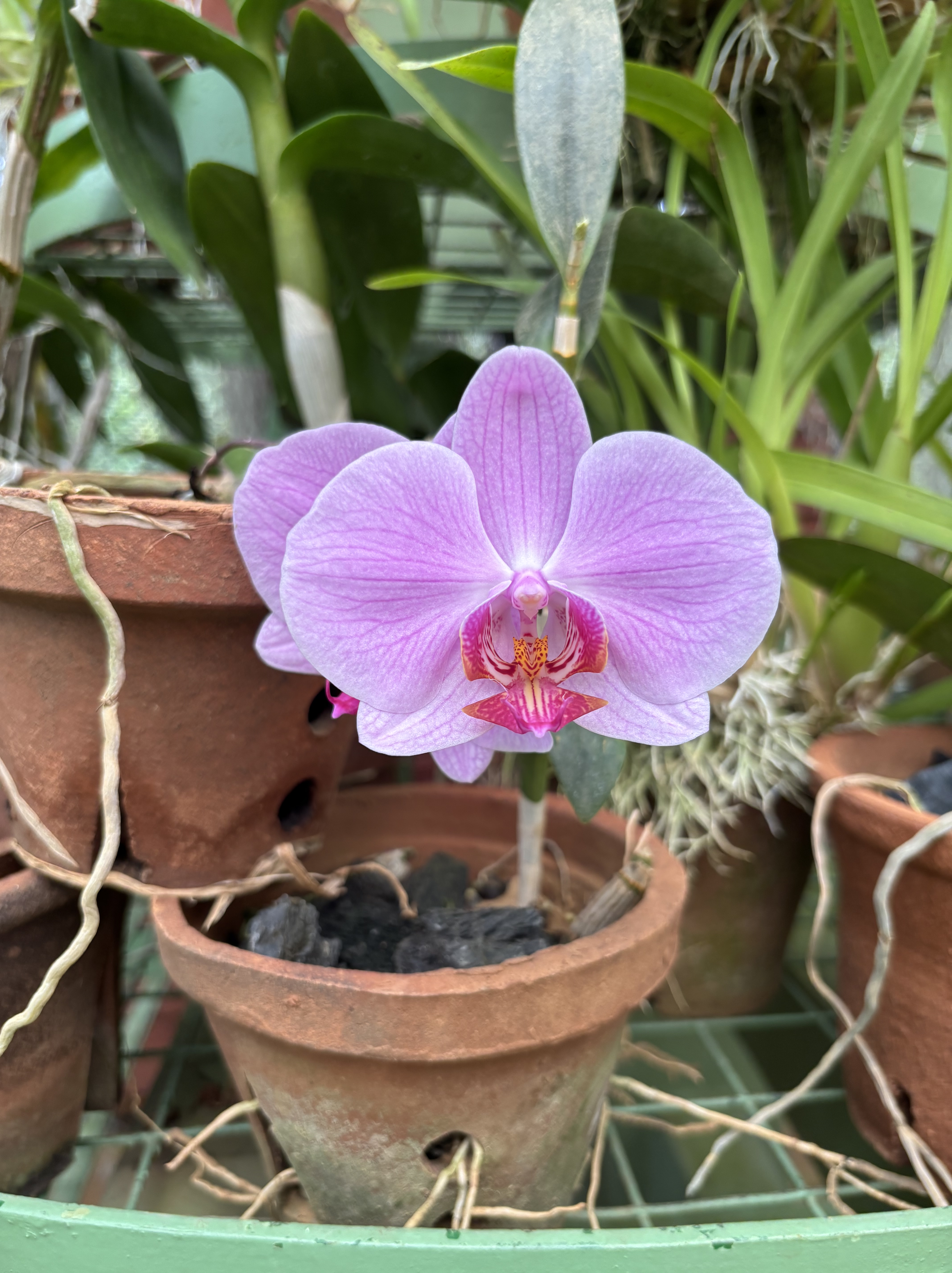 We decided to wander around the gardens by ourselves. A beautiful setting and whilst very popular it is so large that it is easy to find places where there is virtually no-one around. Gillian very much wanted to go to the orchid house. What struck us that the orchids were not plated in soil but what looked to be charcoal lumps. Orchids require specialised, highly porous, and airy, potting media rather than traditional soil, as most are epiphytes that breathe through their roots.
