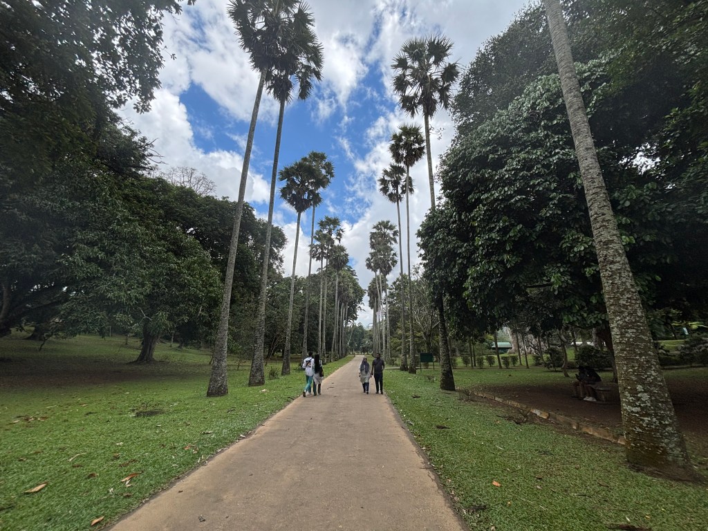 Following the visit to the Temple we took the coach across the city to the Horticultural Gardens. The total area of the botanical garden is 147 acres (0.59 km2), at 460 meters above sea level, and with a 200-day annual rainfall. The history of the Royal Botanic Gardens dates as far back as 1371 when King Wickramabahu 3 kept court at Peradeniya near Mahaweli Ganga. Later, in the reign of King Kirti Sri from 1747 to 1780 this was made a Royal Garden and from 1780— 1798. The present Botanical Gardens were formed in 1821 six years after the final conquest of the Kandyan Kingdom. By 1843, with the donation of seeds and plants from Kew Gardens in London together with a collection from Slave Island, the Botanical Gardens was formally recognised. The gradens are boarded by the River Mahaweli – the longest river in Sri Lanka.