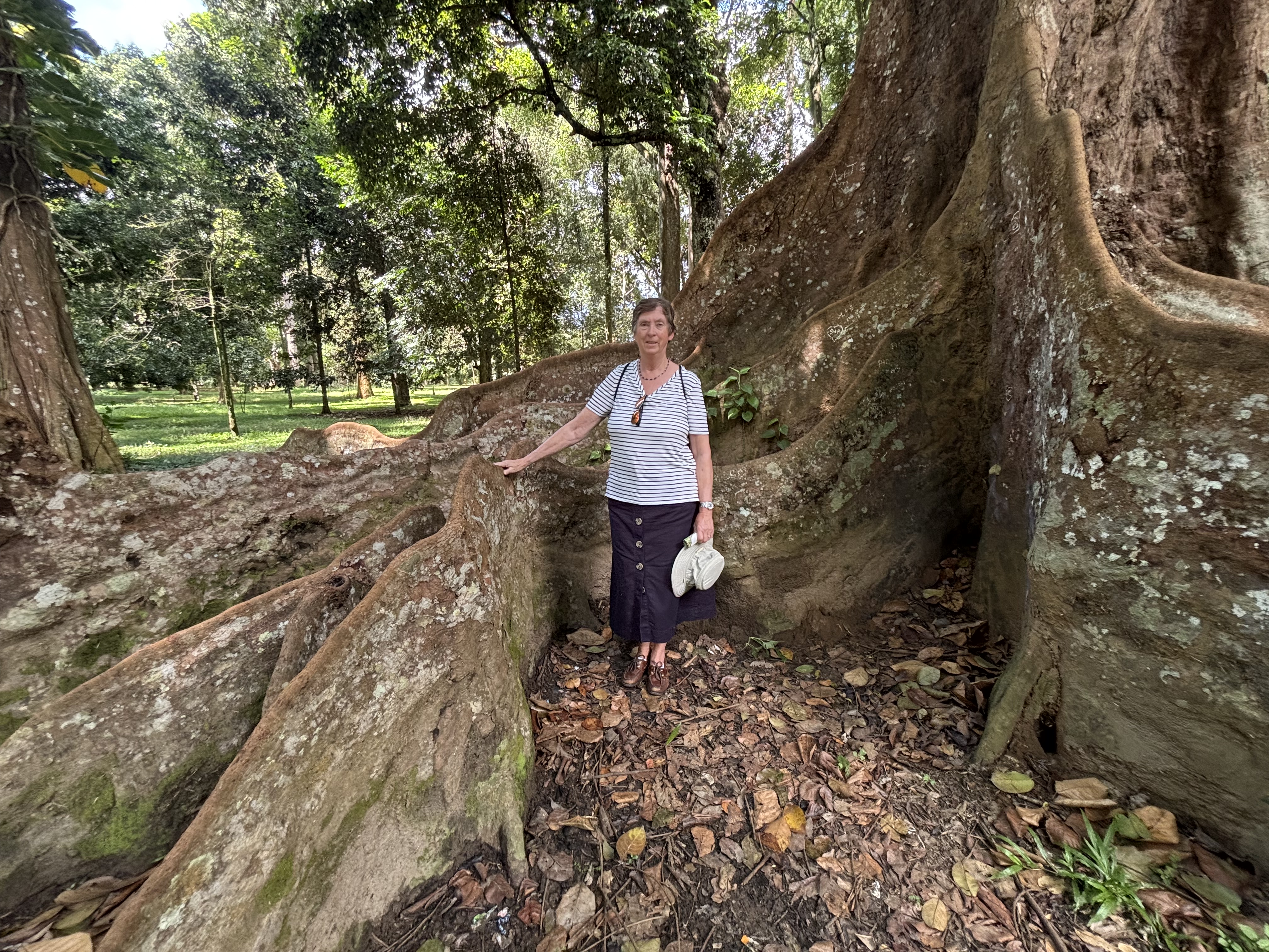 From here were strolled through the arboretum – a 34.5-acre, unique dry zone forest sanctuary established by Sam Popham in 1963. It focuses on the conservation of indigenous trees and biodiversity. The site serves as a vital educational and research facility, featuring over 130 species of trees. The trees were magnificent; tall, majestic with huge root systems. It was like walking though a small forest with the sound of birds and as we got closer to the river the chatter of fruit bats hanging from the trees.