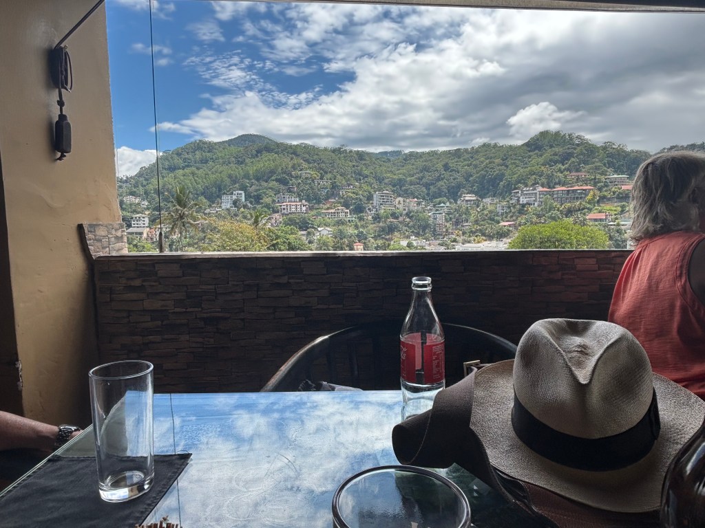 Poya is a full moon day and is a Buddhist day of prayer and reflection. The significance of the day to us is that no alcohol can be sold or drunk in public. We had as lazy morning by the pool and decided to go back to Slightly Chilled Restaurant for lunch. The added advantage of lunch here was were the great views across the city and hills above Kandy. The food was as good as before with Michael welcoming us back. It is a very social location and on both occasions we were here we chatted to some interesting people. This time is was to a woman who was working in a secret location that looked after young girls 12-14 who had been the subject of domestic violence or sexual abuse. In the short time she had been here she felt that there was an unpleasant under-culture in some areas where women were not treated well. On a more upbeat note, she was an avid cricket fan from Headingly, Leeds and we tried to persuade her to try a tour with Not Out!