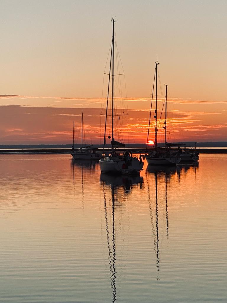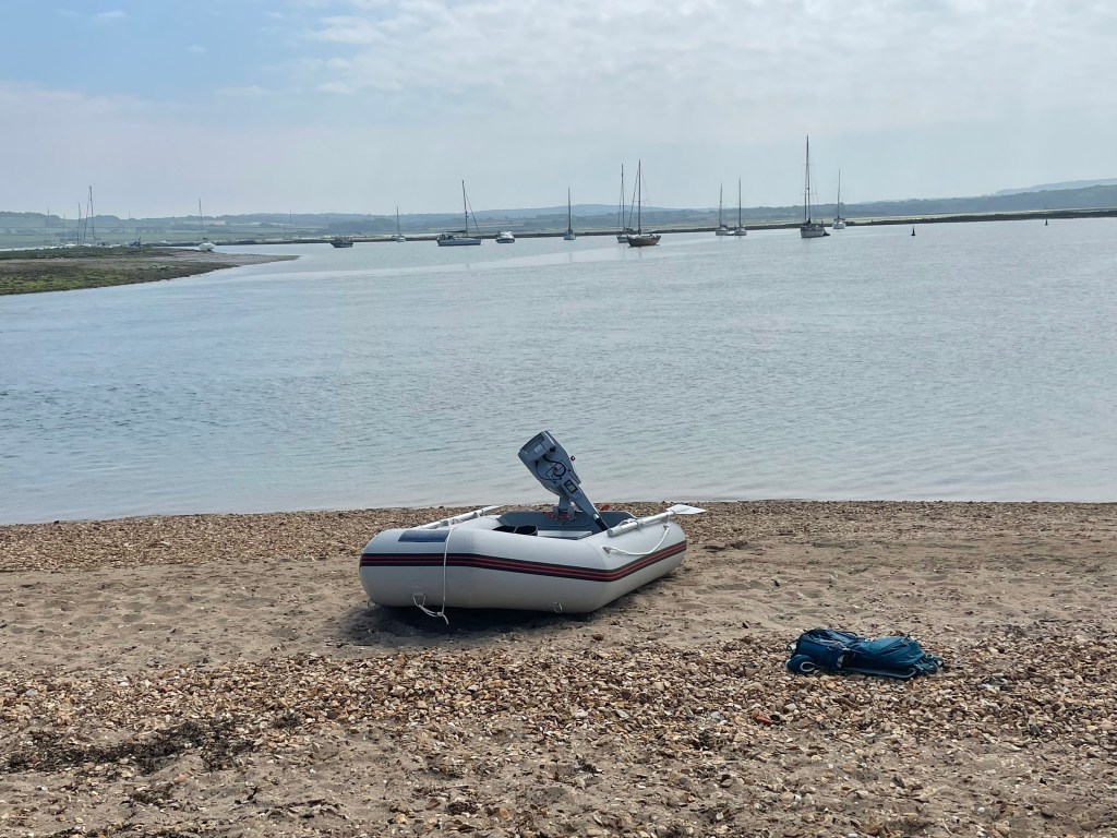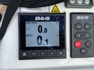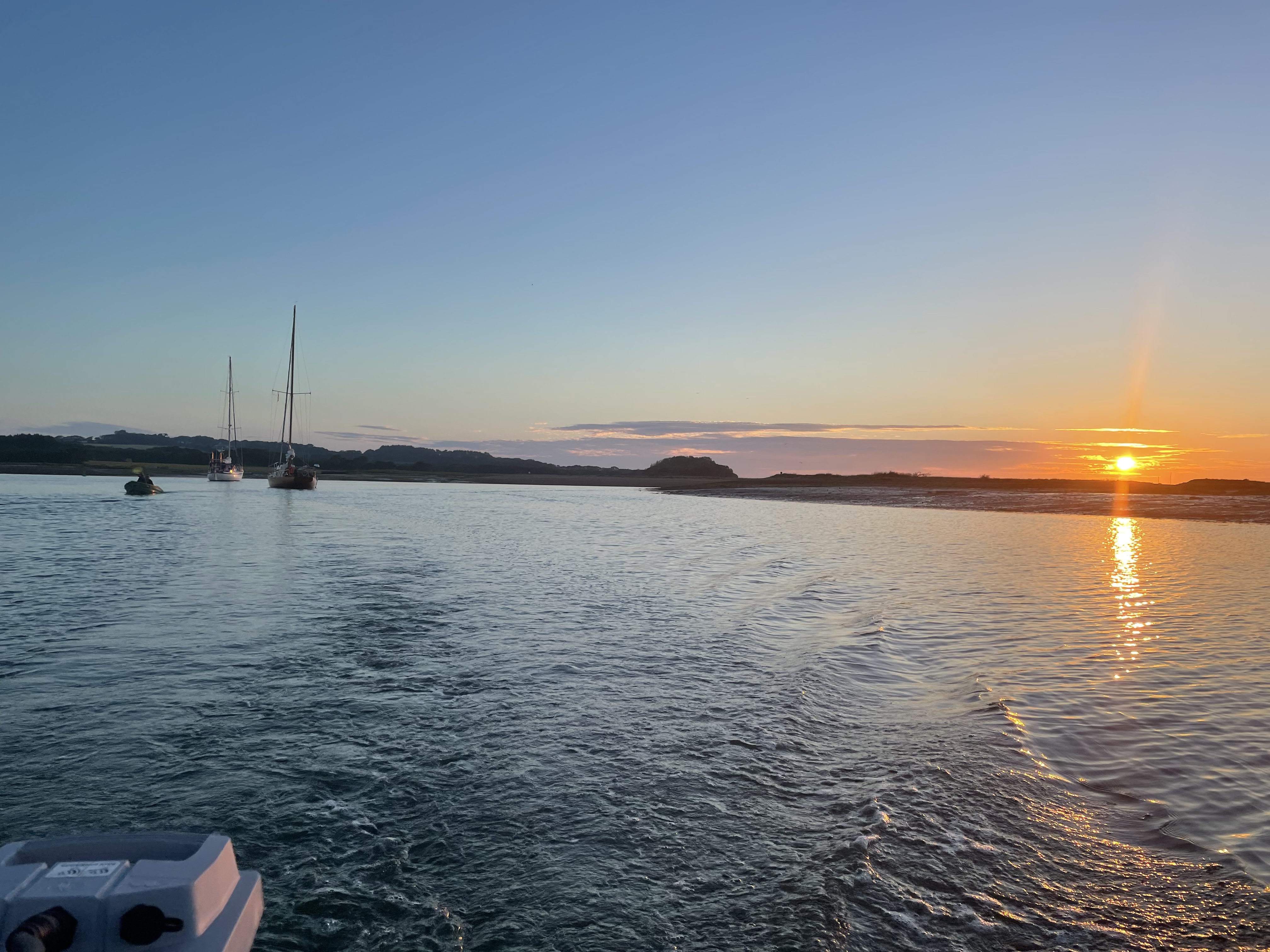 Gillian had decided to stand-down for this trip. I had broken the once per month agreement! Patricia kindly volunteered to come along. She had not ben sailing for the last 2 years since Michael had sadly passed away. It was a poignant trip for her as his ashes were scattered in his favourite anchorage of Newtown Creek. It could not have been a better day – warm and sunny albeit with little wind – hence a gentle motor down to Newtown where we arrived at what we thought would be an early arrival time, expecting plenty of buoys to be available. A bit of a shock when we arrived – absolutely packed. No buoys and we struggled to find a place to anchor. Whilst you have enough depth in Clamerkin Lake, the channel is quite narrow, hence if you put out too much chain there is the risk you swing onto the mud-bank and as the tide goes out you are left a little stranded! We dropped the anchor twice between two boats but there was limited room to swim, so we upped anchor and found a slightly quieter spot. I would like to put the choice of location down to outstanding seamanship as we ended up at low tide with .1m – 4 inches of water beneath the keel. However…… more luck than judgement.