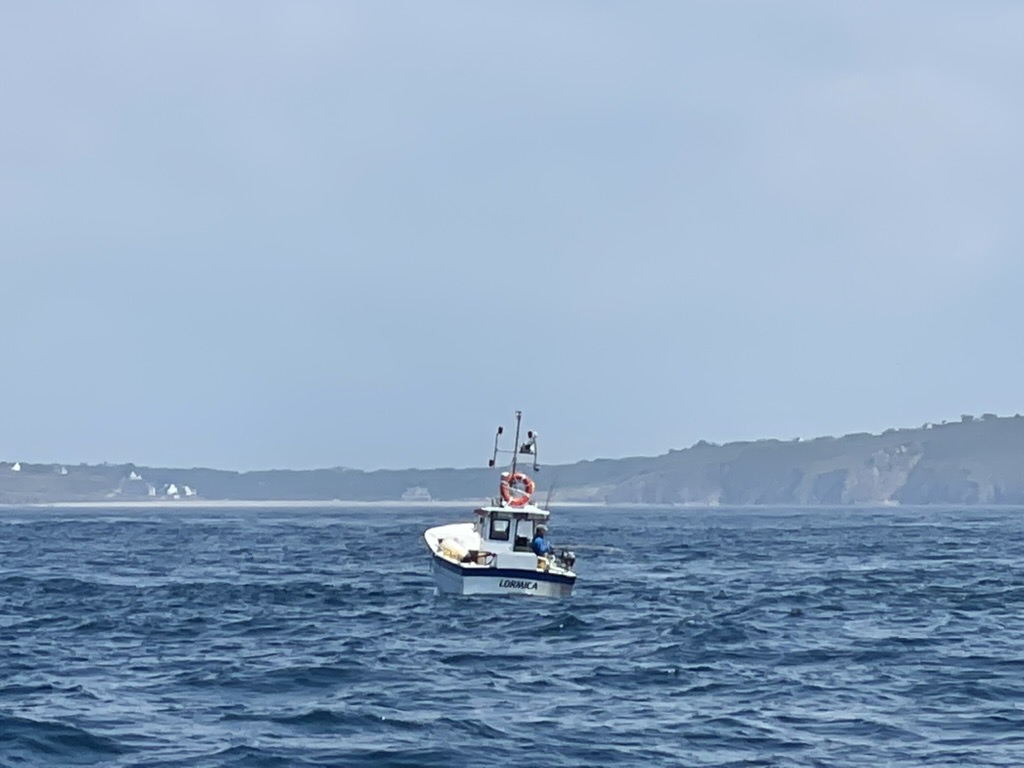 This was another milestone day. So far I had turned ‘half the corner’ – Chenal du Four – to day was the trickier Raz de Sein. This has a vicious reputation at the bottom end. As ever with these tidal gates, timing is everything. I had looked at the pilot books and the advice was to get there at Brest HW-0100 as the tide was turning. I had estimated it would take me 3 hours to sail the 15 miles to the Pointe du Raz which meant leaving at mid-day. However I was a little impatient to be off and after asking the harbour master to lend a hand with the lines, I slipped around 1100hrs. Wind was from the NE and was around 15kts – just about right. A reach across the bay, cut through the Chenal du Toulinguet and then more or less a single tack down to Pointe du Raz.