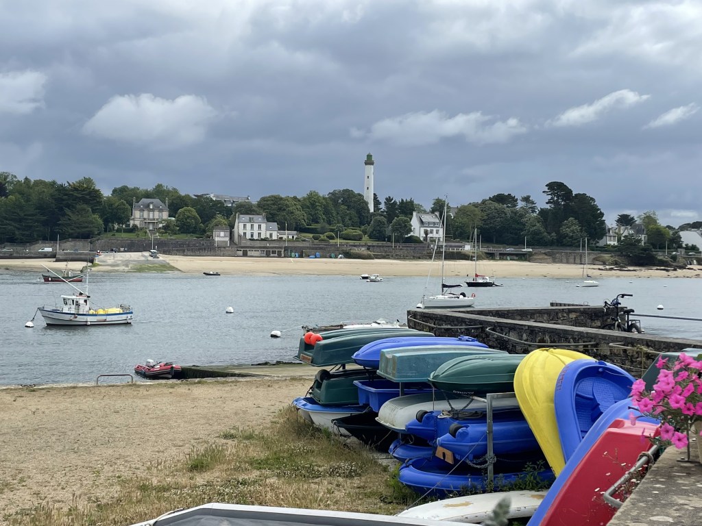 This was a straight forward sail across the bay to Phare D’eckmuhl, around the corner and into Bénodet. I left early for two reasons – I enjoy the quietness of the early morning and I was unsure how busy Bénodet would be. The disadvantage to this strategy was that I would be arriving at exactly the wrong time from a tidal perspective. The pilots had warned of very swift tides through the marinas – this was okay if you were berthing against the tide but tricky if with the tide. The day started well. Blue skies and light winds. There was one other boat just behind me who looked as if he was heading the same direction.