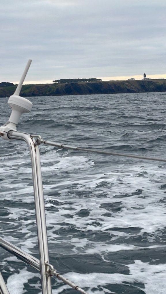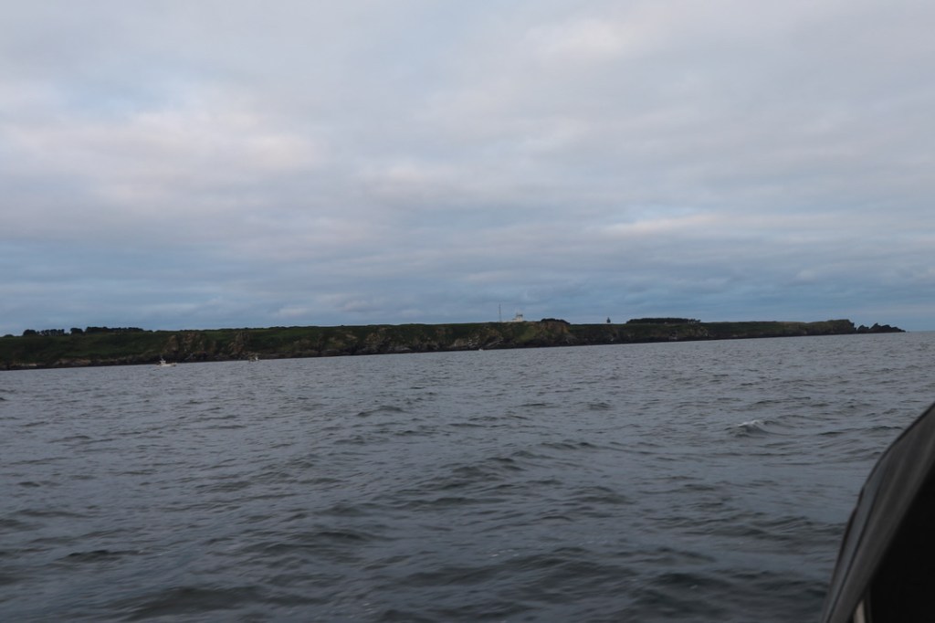 It was also cold! I tentatively felt my way out of the narrow channel from Port Louis into the main channel where I was able to get the main up before passing the Citadel. I motored down the channel heading towards the Ile de Groix with the harbour and marina on this side of the island – Port Tudy. Despite little wind just before dawn broke I switched off the engine and sailed at a sedate pace of around 4kts. Around me were the early morning fishing boats of different sizes – all small and mostly fishing for lobsters. There is a designated approach channel that comes around the NE of Ole de Groix and down into Lorient. To avoid any complications with traffic that might be approaching, I changed tack to cross at 90 degrees – motor sailing. Having exited this traffic lane it was back to sailing with a course that would set me just to the West of Iles de Glenan. Time for breakfast! Fried the remainder of the rotisserie potatoes I had bought on Saturday with the last of the gammon. Buttered some French bread and a strong cup of coffee whilst Purrfect Tale sailed on auto helm