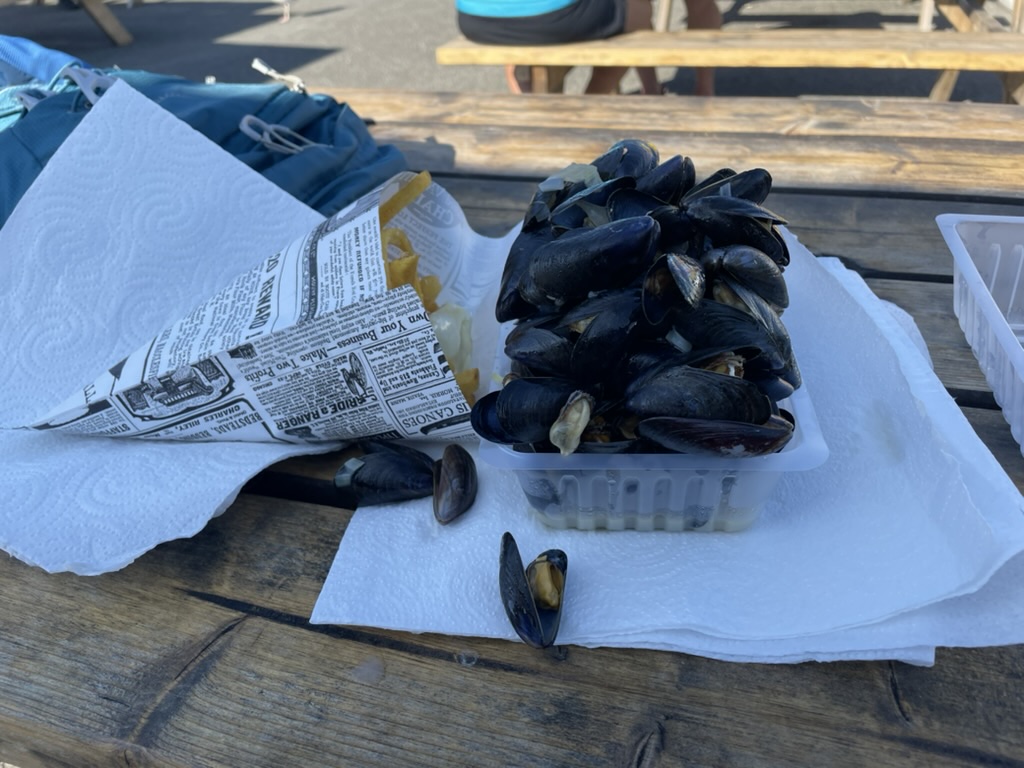 Dex and Julia had recommended a moules and frittes van on the quayside which was superb. For E10 you had enough moules to feed two with a healthy (or unhealthy!) portion of fries with mayonnaise.