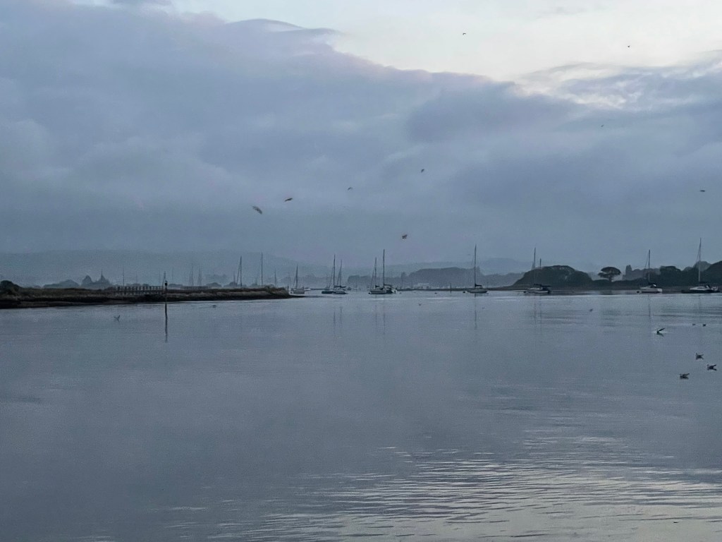 After breakfast of porridge, it was into the dinghy with the electric motor, and travelled upstream to West Itchenor. Landed at the jetty, life-jacket into back-pack and then a walk along the shore to West Wittering. The short video above provides a feel for the landscape; mudflats, birdsong and the occasional sailing boat or fishing boat travelling down to the entrance to Chichester Harbour. 55,000 waders and waterfowl visit the harbour each year accounting for 1% of the world total. It’s history predates the Roman’s and it is now an area of designated outstanding beauty. After a walk fo some 90 minutes a coffee and bacon roll was much needed in the small village before the stroll back along the back-roads and shore line. Lunch on board was pork-pie, ham, cheese and fresh bread.
