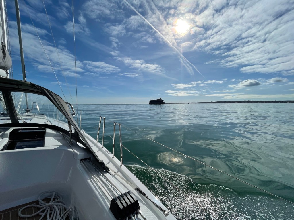 A nice long tack across to Bembridge and then a bit if zigzagging down the Solent, past the Forts, Southampton, Browndown and into Osbourne Bay. Some yachts out and a little bit of commercial shipping but compared to summer it was a very quiet and pleasant day.