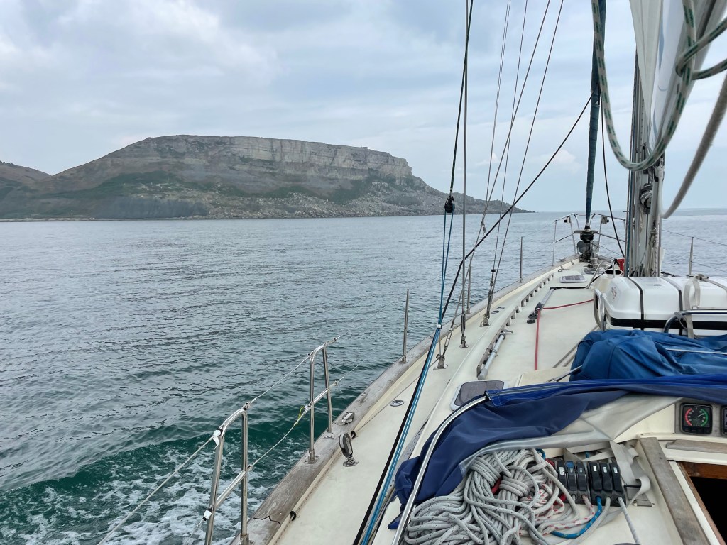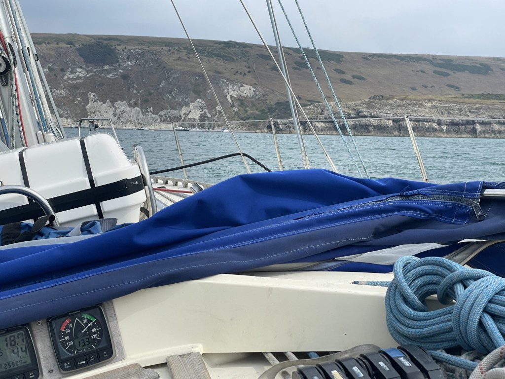 Once the storm had passed we were able to shake out the reef and sail on to Poole around Old Harry and down the Poole Fairway.