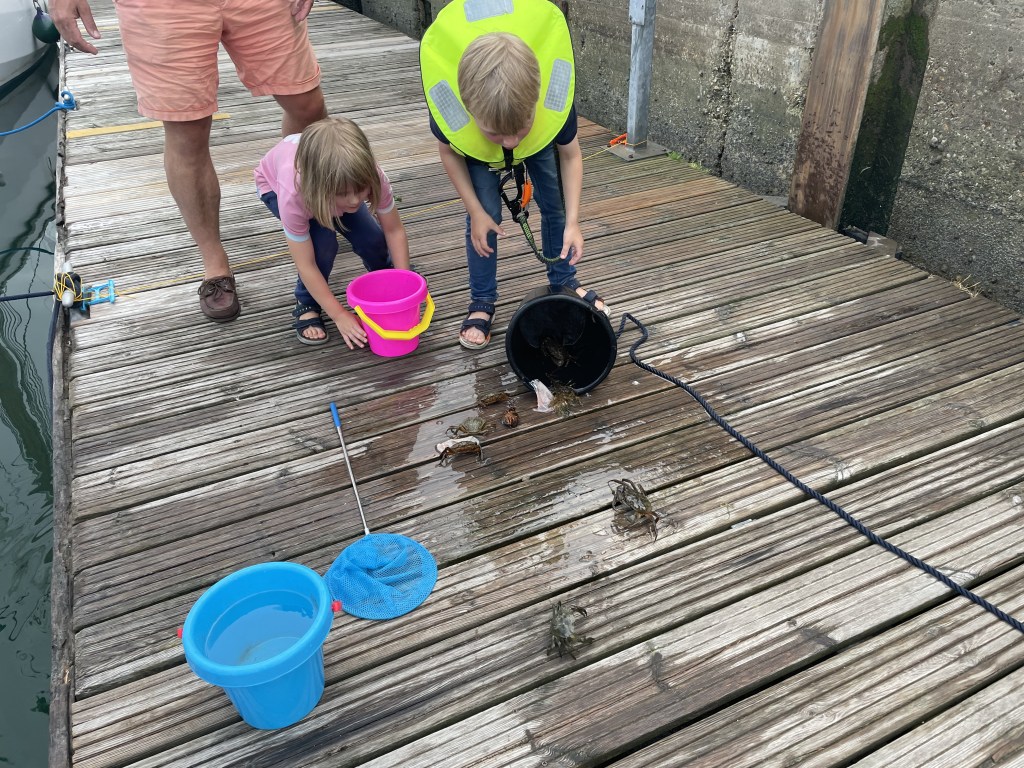 Wandering back to the boat, I stopped off to have a generous ice-cream which I did not really need but was in want of something to lift the spirits. By now it had become quite busy on the quayside. There was a Contessa 32 from the Royal Southern Yacht Club on the quayside. I had met them before at a rally in Yarmouth. It was a full boat for the visit to Weymouth with the family including two children and one set of grandparents from South Africa. Whilst chatting with them, the children who had been crab fishing decided to have a crab race with the ones they had caught. Each of us choosing our favourite crab as they scrambled somewhat eloquently across the pontoon and into the water.