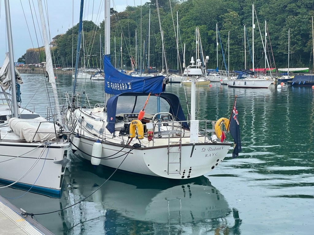 RMAS had charted a Royal Artillery boat St Barbara V – a Rustler 42. The ‘V’ gives it away as being the 5th RA yacht with this name. Margaret Widdop remembers seeing the ‘I’ somewhere off Yarmouth quite a few tides ago! Given the sizer of the boat and the complexity of some of the systems there was a need to undergo a familiarisation course at Gosport – hence the trip down there on 12th August. A baking hot day. I was expecting to be test under motor but in the end it was a laid back approach having understood that I was reasonably well qualified and experienced. The Bosun – Ed Middleton – was a Bombardier who had been looking after the RA yachts for a number of years. He efficiently took me through the various systems from power, water, fuel, filter, instruments, heads, sleeping arrangements and sails. We spent a good 3 hours casually chatting before I departed back home.
