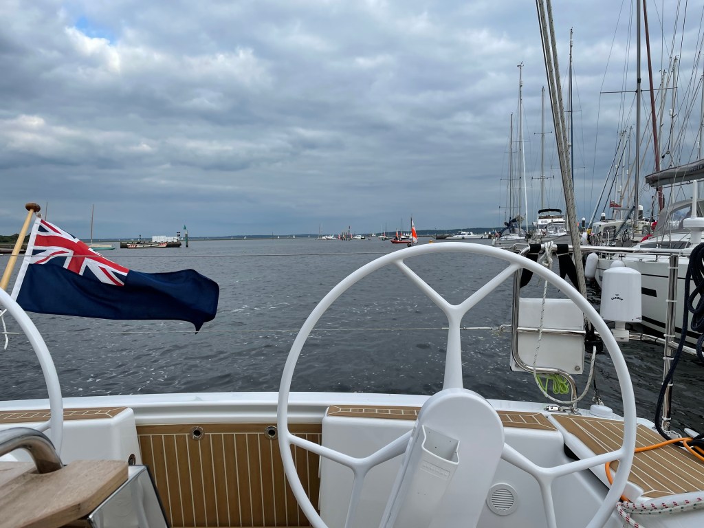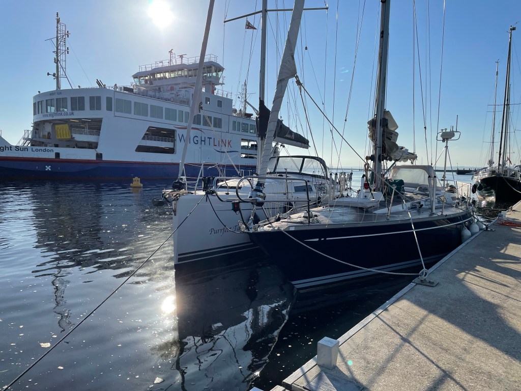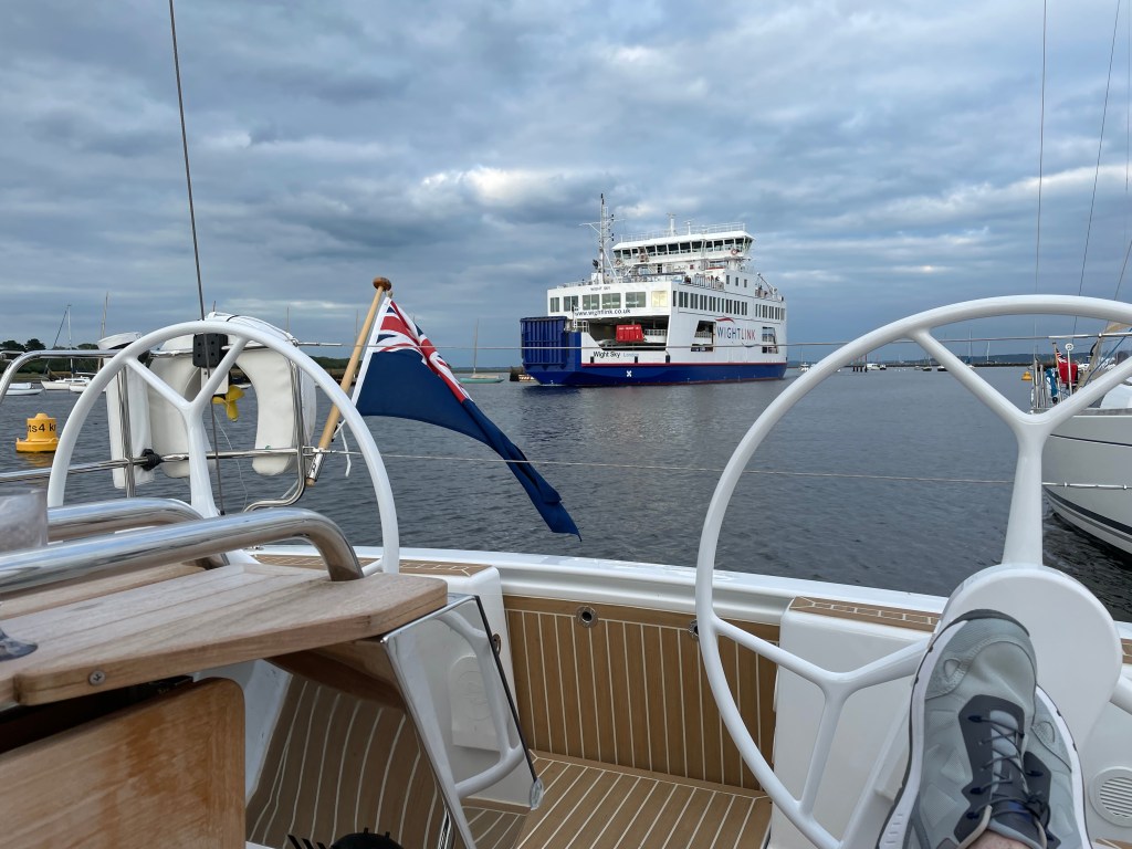 A steady day with a sail down to Lymington onto the Dan Bran Pontoon. We came to the boat the previous down weekend to load the boat – a lot of stuff for 2 weeks sailing; clothes for every type of foreseeable weather, food and drink plus spares and cruising almanacs. We had a gentle breeze from the NW to take us down the Solent arriving in Lymington around 1700hrs. It was already busy as many marinas are this summer so we doubled up next to a very pleasant couple who had sailed across the Thames estuary. The evening meal was chilli – which nearly did not happen. We had attempted to leave the house twice – went back once for the boat keys and went back a second time for the chilli. And we still forgot the bread and eggs! From the Dan Bran Pontoon you can see all of life on the water in Lymington sail pass you, incoming yachts, dinghy sailing and Isle of White ferries plus a beautiful view across to Yarmouth and Newtown Creek.