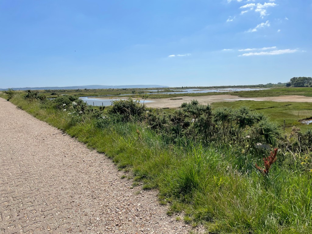 A non sailing day. Hovered around the marina for a little while to find out whether the boat on the inside of us was staying or going and whether the Harbour Master felt the need to move us. We were very happy on the outside – an early morning start to Poole meant we did not wish to be getting others out of bed at 0600 in the morning. A short walk into town for some fresh food – local cheeses, salami, bread yoghurt and strawberries with an iced coffee at cafe. In very hot weather sitting around drinking iced latte is a luxury that does not come around that often in UK. After lunch on board we took a stroll over the salt marshes that face out onto the Solent. A breezy afternoon but the Chequers Pub at the end of the walk was worth the limited effort. A jug of Pimms between the two of us was sufficient to quench the thirst. As usual my communications with Gillian were not all that they could have been and after 30 minutes of walking she did sort of hint that if she knew it was a ‘walk’ and not a ‘short stroll’ she would have put on some suitable footwear!