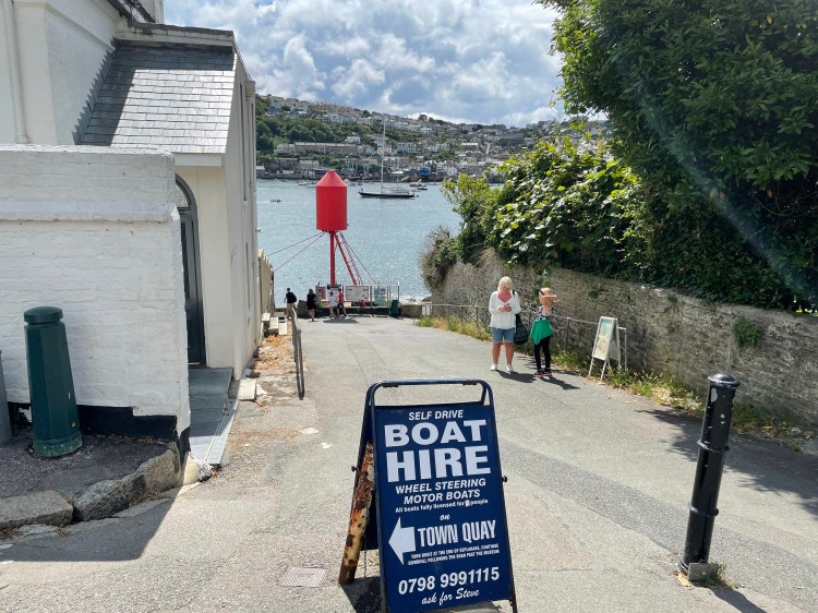 We had been to Fowey previously – pre-pandemic – when it was heaving with people. Whilst busy it was not quite so frenetic. We wandered ashore as we had volunteered to host the last pontoon party when we got to Falmouth the following day. Having caught the water taxi – discovering that in Fowey cash is still king requiring a quick dash to the cashpoint – we found Sarah having a quite breakfast by herself. We immediately scuppered that and joined her for a generous portion of scrambled eggs, bacon and soda bread, probably spoiling her only solitude of the day! Shopping completed – pork pies, sausages, some dips bought we wandered around Fowey which without the streets being packed was a very pleasant small town. I was tempted at one of the shops that sold old nautical lamps to buy a ‘port’ lantern as one of the prizes for the Summer Racing Cruise. For those familiar with cycling you will know that there is the Lanterne Rouge award for the last cyclist home in the Tour de France. I was not quite sure how this would be taken so hesitated – although it would have guaranteed me a prize this year!