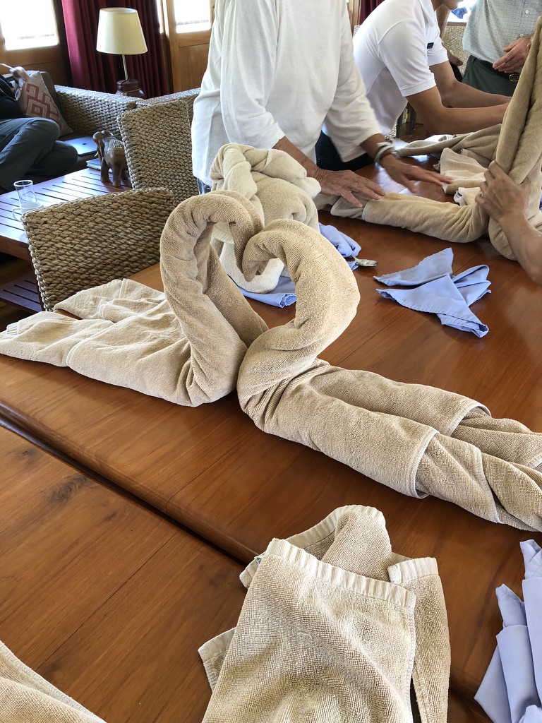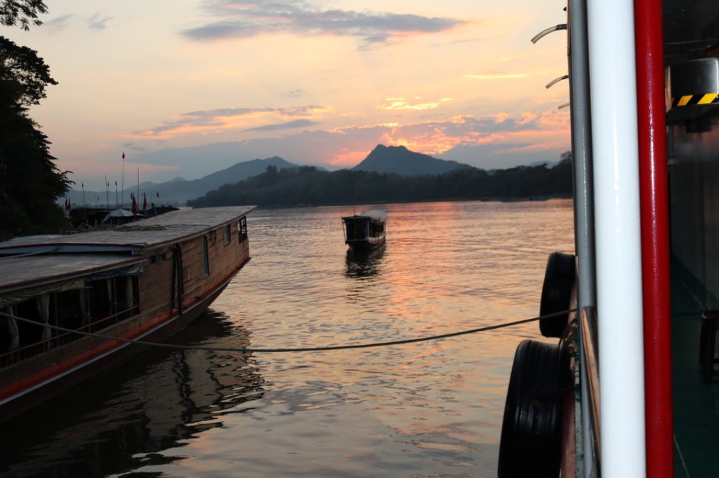 Dinner was excellent – giant Thai prawns with chilli sauce. After dinner was a film on the wildlife of Laos – its tigers and big cats. I was certainly ignorant when we started on this journey as to where we are going and on Laos. In a short period I had become very entranced with the country. One that has rich diversity of culture and wildlife, stunning untouched vistas but poor. Slowly you can see the Chinese influence, buying land and access by creating debt and dependancy of Laos via the Belt and Road Initiative.