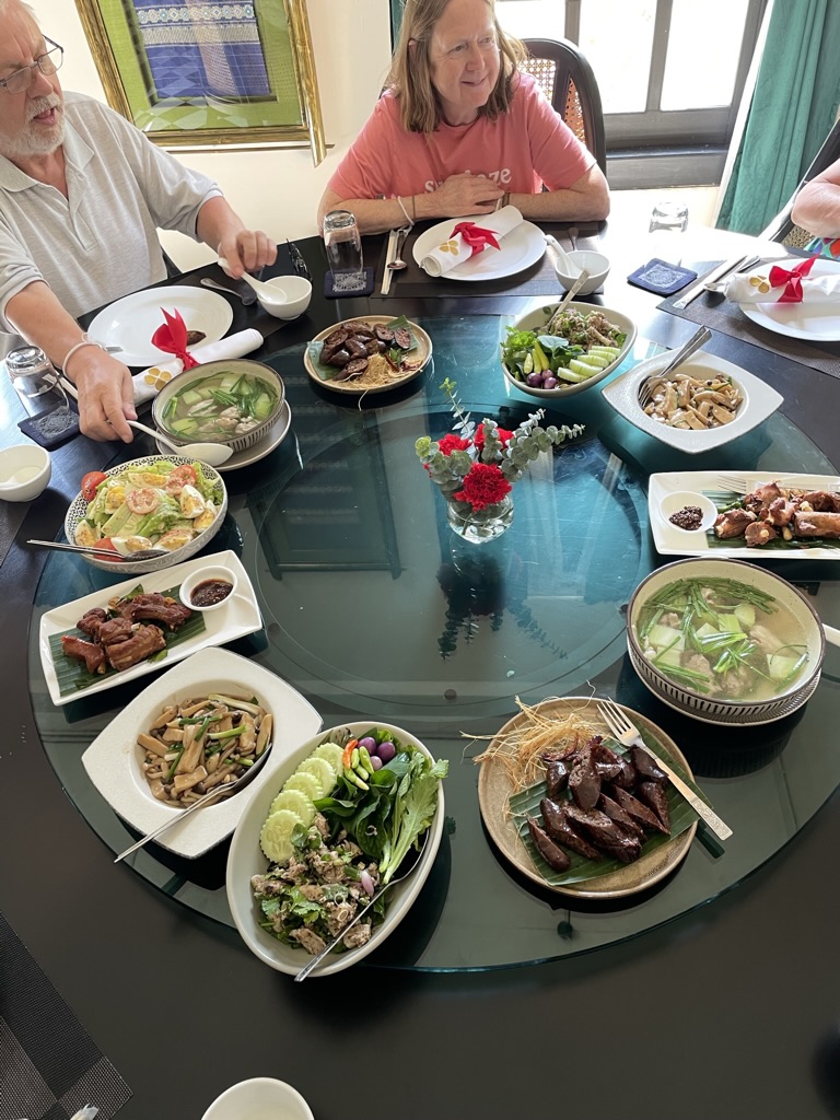 Lunch was at Lao Derm Restaurant. It was very upmarket. We sat at a large table with a rotating table in the middle for the various dishes that were served. It was a very good meal and good conversation with those around us.