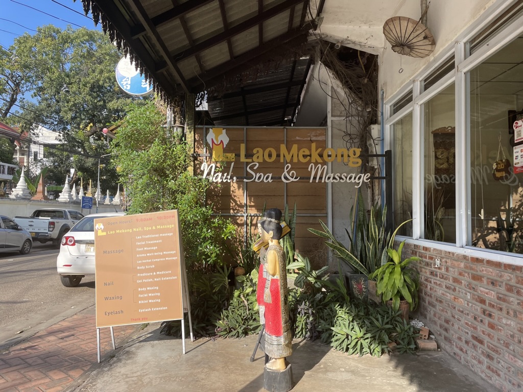 After breakfast Gillian stayed on the boat and I walked into town for a massage. I picked a location more or less at random on the main street but it turned out to be quite good. First my feet were washed and I was then taken into a room where I lay down om a mattress on the floor and had a back, shoulder and neck massage for 1 hour at a cost of 10,000 Kip – around £5. The etiquette was to change into the PJs they left for you on the bed whilst they were out of the room and they would then come back in to undertake the treatment.