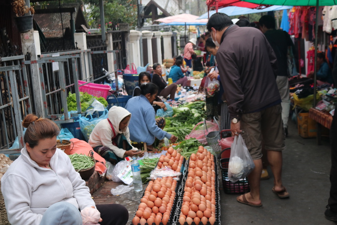 The morning market was large and bustling. Vegetables and spices of every variety as well as fish, meat and game. The Laos do eat whatever they can kill/catch – this includes, owls, rats, bats. Whilst we as westerners may have our own reservations, we are able to have the luxury of the thoughts based upon an ample diet. Who are we to say it is wrong when the alternative is no protein intake and just a diet of low quality rice.