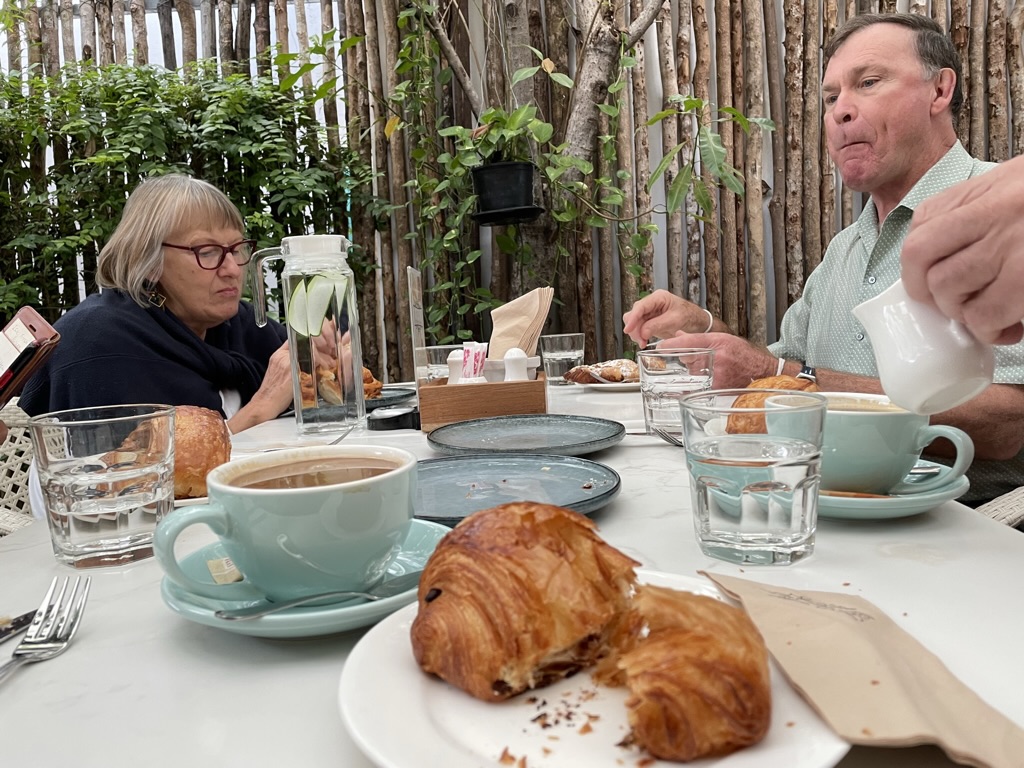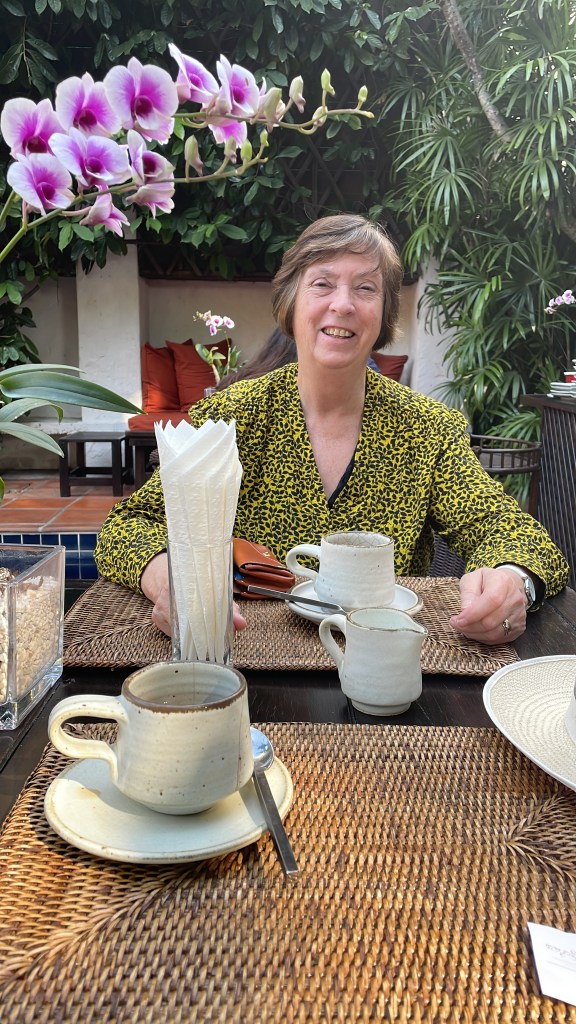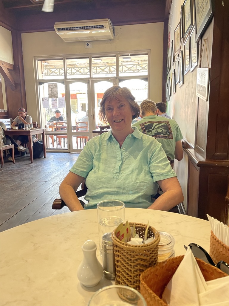 A few of us went to Annabelle’s for breakfast – Peter, Fran, David and Rhona. A small cafe where we sat outside under an awning. The croissants were outstanding and a relief to have some decent coffee. Laos PDR (Please Don’t Rush) lived up to its name! But the staff were young and very helpful. I did give them a review on TripAdvisor and it was noticeable that for many places in Laos no-one had commented since 2020 which is an illustration of the impact of Covid on the country.