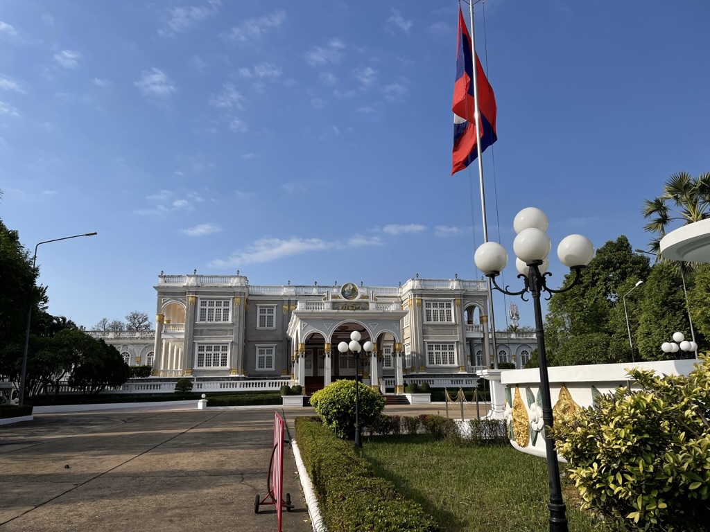 The morning was a tour around Vientiane. It had a city feel to it and did not seem to have a heart/centre anywhere. We stopped off at the Presidential Palace. For such a poor country the government clearly puts a lot of store in big buildings. From there we crossed the road to Sisaket Temple. One of the few temples to survive the sacking of Vientiane by Thailand in 1827. Another beautiful and peaceful temple. It has on display one of the ceremonial Nagar’s for the washing of the Buddha. The French was funding a project to bring back the colours to the frescos inside the temple – adding to the serenity and beauty of the place.