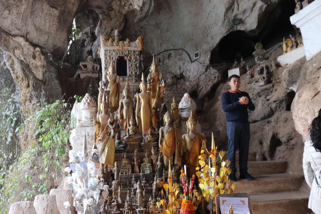 This was not a good day. I had gone down with a cold overnight and felt terrible in the morning. It was a fairly action packed day with a visit to Pak Ou Buddha caves in the morning. We transferred to a smaller boat to get us into the docking point at Pak Ou and then a short climb up to the lower caves.