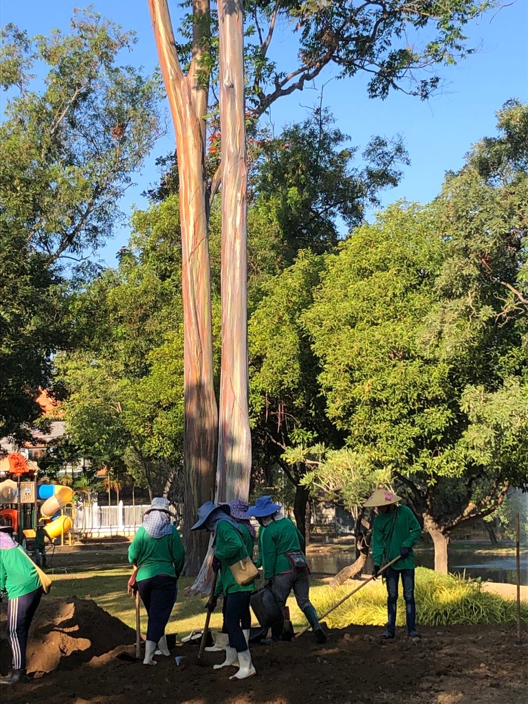 Post visit we went up to the viewpoint where we looked over Laos, Myanmar and Thailand at the confluence of two rivers. The crossing between Thailand and Myanmar was very narrow yet the difference in lifestyle was enormous. Lunch was at what looked to be a garden nursery that served their own organic food. By this time we had been joined by the majority of the group with whim we would be travelling – 23 of us in total, including ourselves.