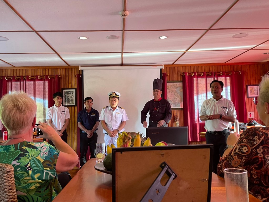 After cocktails Jimmy introduced the crew to the passengers and thanked us for being good guests. The crew was 2 Captains – one for each section of river we had come down, 2 engineers, 4 chefs, 2 barmen, 2 cabin crew and 2 to 3 general crew members. We also thanked them for being great hosts.