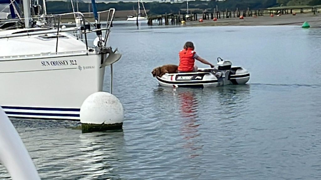 We were both relaxing in the cockpit when Julian came past on his way on. However we were so engrossed in whatever we were doing that I missed them. Feeling a little guilty that I had no acknowledged their arrival I rowed the boat up to No 11 buoy for a quick hello. For both Julian and Alison it was a work at boat day – with Alison on a conference call down below and Julian waiting to start one. They did invite us for dinner that evening – so I left them to earn their honest pennies and came back to Purrfect Tale to pick Gillian up and go ashore for a walk with Maggie and Pat.