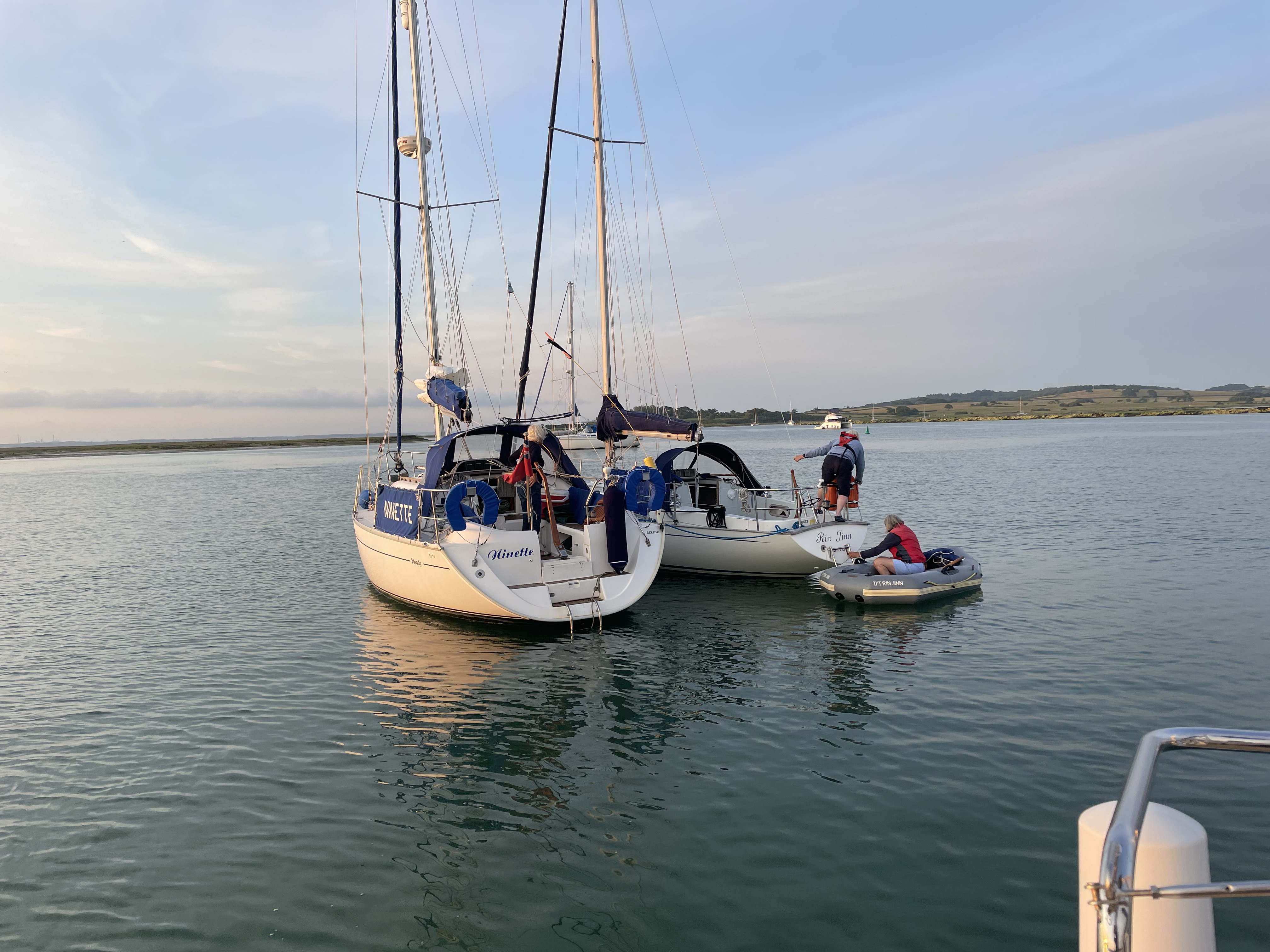 Outside of Newtown there was very little wind and we drifted down the Solent towards Egypt point. There was a dinghy race that was taking place behind us with the boats catching us up fast. We adjusted our position as well as we were able and managed to keep out of their way. By the time we made Cowes entrance the wind had picked up surprisingly – but by then we had sorted out the sails and made our way slowly into Cowes Marina. It has been some years since I have visited this marina and to be honest did not have a great option of it – average facilities and noisy pontoons aggravated by too much drinking – wow I must be getting old and grumpy! I was pleasantly surprised. There was a boat on the water to welcome us and plenty of hands ashore to take lines to guide us in – a stressless mooring. By now it was very hot and both of us needed a shower. We stopped by the bar in the marina for a drink before finishing off admin. A bit of shopping for the pontoon party completed we changed for supper and joined the remainder of the very welcoming Motor Boat Rally which had been organised by Doug Fisher.