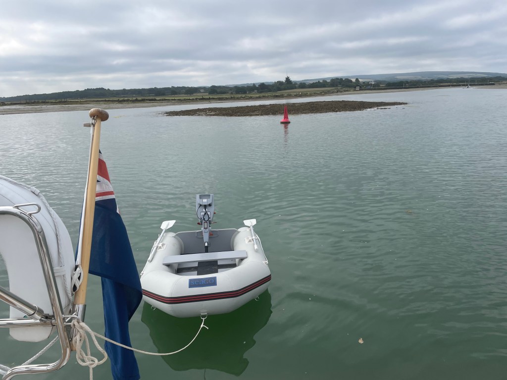 The afternoon was spent trying to work out what was wrong. E45 indicated an electric motor problem. So propeller came off and the locator pin was found to be snapped. This was replaced, weed removed, cables refitted and motor remounted on the dinghy – numerous times – all to no avail. After 2 hours all hope was abandoned and I resigned myself to very inefficient rowing for the rest of the stay in Newtown. My inefficiency was brought home by a large blister on my thumb from the pathetically short row from Shalfleet back to the boat!