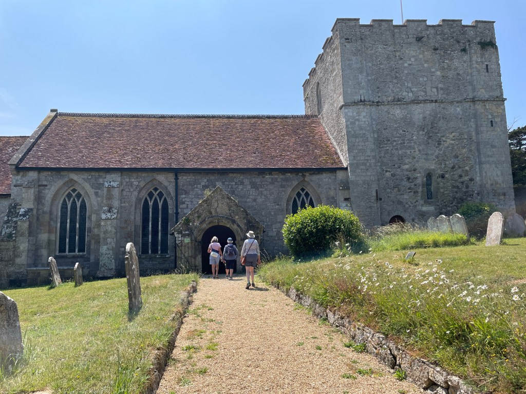 The tides were just right to take the dinghies up to Shalfleet for a look around the village, visit the Church of St Michael the Archangel and have lunch in the local pub. Maggie and pat were quicker off the mark than we were. I enquired as they rowed past at an impressive pace where the landing was to get ashore. I was assured by Maggie that it was obvious – just follow the river was the response. Mmm – it was not quite that clear if you had not been there previously and after a couple of wrong turns we did arrive at what we had to admit was an obvious landing/quayside right next to a lifeboat. We were on a flooding tide and having secured the dingy and climbed the metal rung ladder we took the short walk into the village.