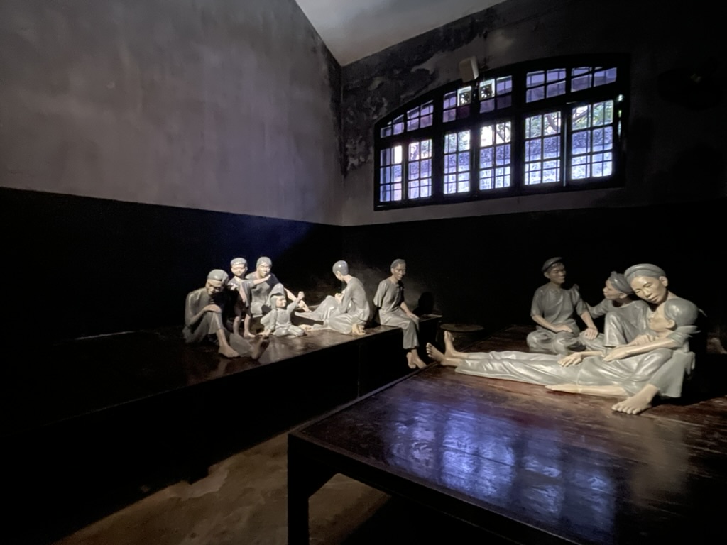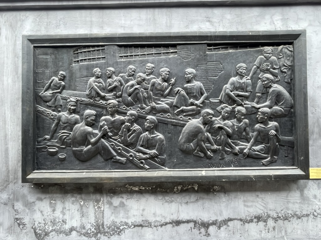 Our last trip of the morning was to the ‘Hilton Hanoi’ the infamous prison in the French quarter. It was both interesting and a disappointment. The prison had in fact been demolished. A large part of it had been built upon creating Hanoi Towers – a commercial centre. The street front had been recreated in the style of the old prison. The story was unsurprisingly centred around the plight of the Vietnamese under the French and it is fair to say that it was probably not exaggerated. Long narrow prison cells with raised benches each side where one foot of the prisoner was shackled and they could only sit or lay. Little ventilation and little water and food. Torture was primitive but brutal. There was a section on the US prisoners but it was not possible to get a view of how they had been held or treated – the story was told through rose tinted glasses. I was surprised at how many prisoners were handed back in 1973 which was about 590 US pilots many of whom had been captive since 1968 through to 1973.
